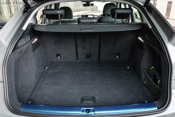 再講講 Q5 Sportback,它是基建於 Q5 變身而來,整體觀感其實分別不大,但是在路上或泊車後,看到車身的側面就會覺得瀟灑很多,原因是它車尾部份有房跑車的斜尾設計,沒有了傳統 SUV 的笨重感覺。雖然 Q5 Sportback 車頂尾部設計轉變了,以中型身驅 SUV 來看依然不錯,頭頂空間仍然足夠;Q5 Sportback 比原來的 Q5 增長了 7mm,腳部伸展空間就不用擔心空間不足,絕對夠用。而車頂的大型天窗天幕也照顧到後座,後座有一半車頂都是天幕部份。後座有冷氣出風口,可以獨立調校溫度,沒有 USB 充電接口,設有一個 12V,可自行添加 USB-A 或者 USB-C 充電設備。後排座椅的前後距離可以調校,從而提升尾箱空間,在需要大量載物的情況下,亦可以翻平後座,將尾箱提升至 1,480 公升。至於電動尾門開關亦相當方便,設置腳踢式感應尾門功能,只要在車尾用腳輕掃,尾門就能作自動感應開啟。