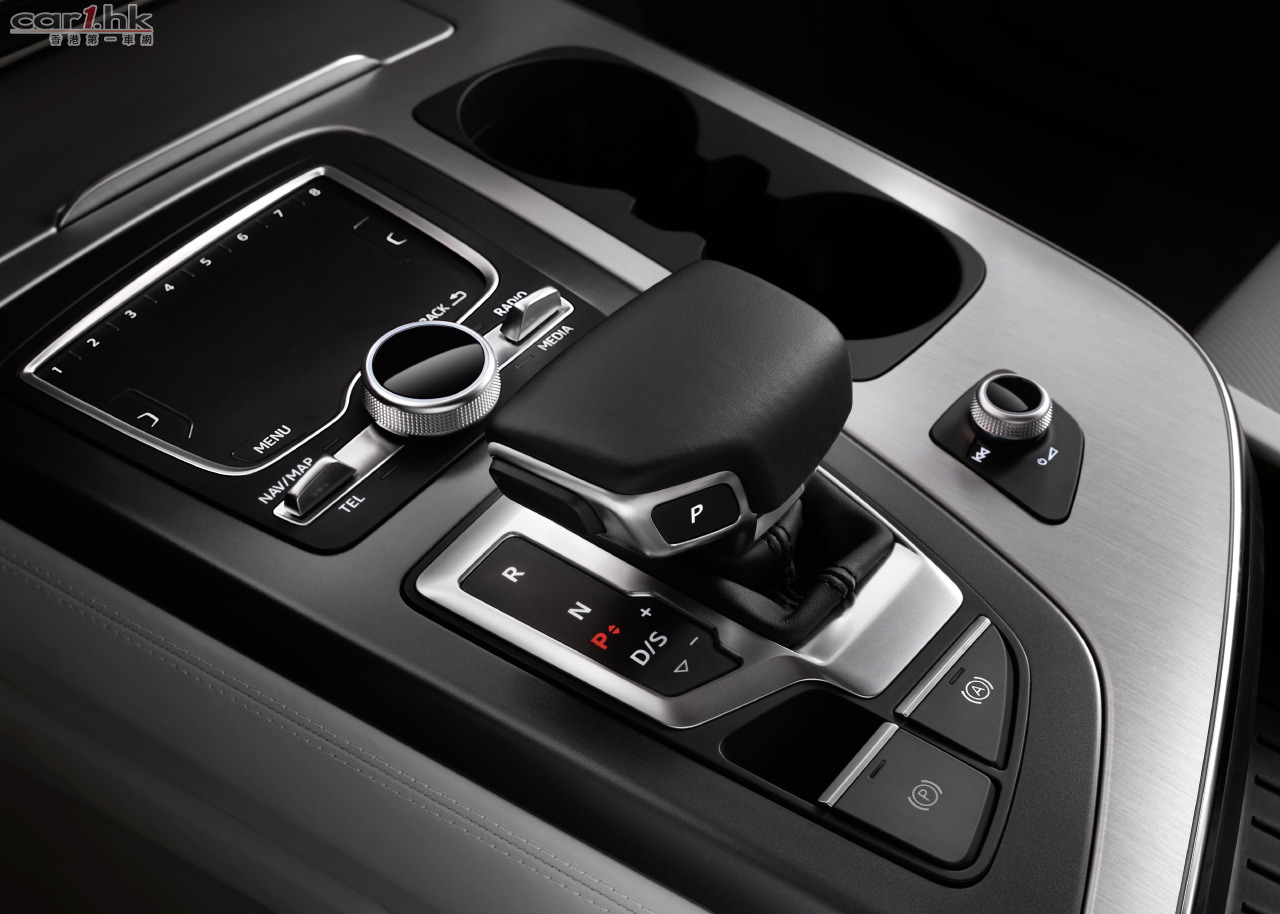 另外,新的8前速tiptronic波箱結合了quattro恆久式四輪驅動系統的中央差速器,它的中央差速鎖直接結合到波箱上,令這個組合的結構減輕了20公斤,加上by wire電控操作,動力傳遞更加爽快直接。波箱採用扭力轉換器能提供高度順滑的動力傳遞,而高齒比的波段又能讓高速巡航時更加省油。中央差速鎖能把動力以40:60比例經quattro恆久式四輪驅動系統輸送到前後車軸,而在有需要時,前後軸的動力更可分別調配到最大70%及85%。新增的引擎轉速感應吸震筒,能有效抑制引擎在低轉速工作時所產生的震動,加上全新的燃油揮發系統,讓這副3.0 TFSI引擎能在低於1,000rpm時仍能暢順工作。今次的扭力轉換器已能提供更早鎖合的功能,有效幫助節省燃油。新Q7 40 TFSI及45 TFSI可做出由6.1秒至7.1秒完成0-100km/h加速的表現,極速則分別設限在230 km/h及 250km/h。極低的平均油耗只有7.2至7.9 L/100km,相當於每公里行車只排放147至183克二氧化碳。