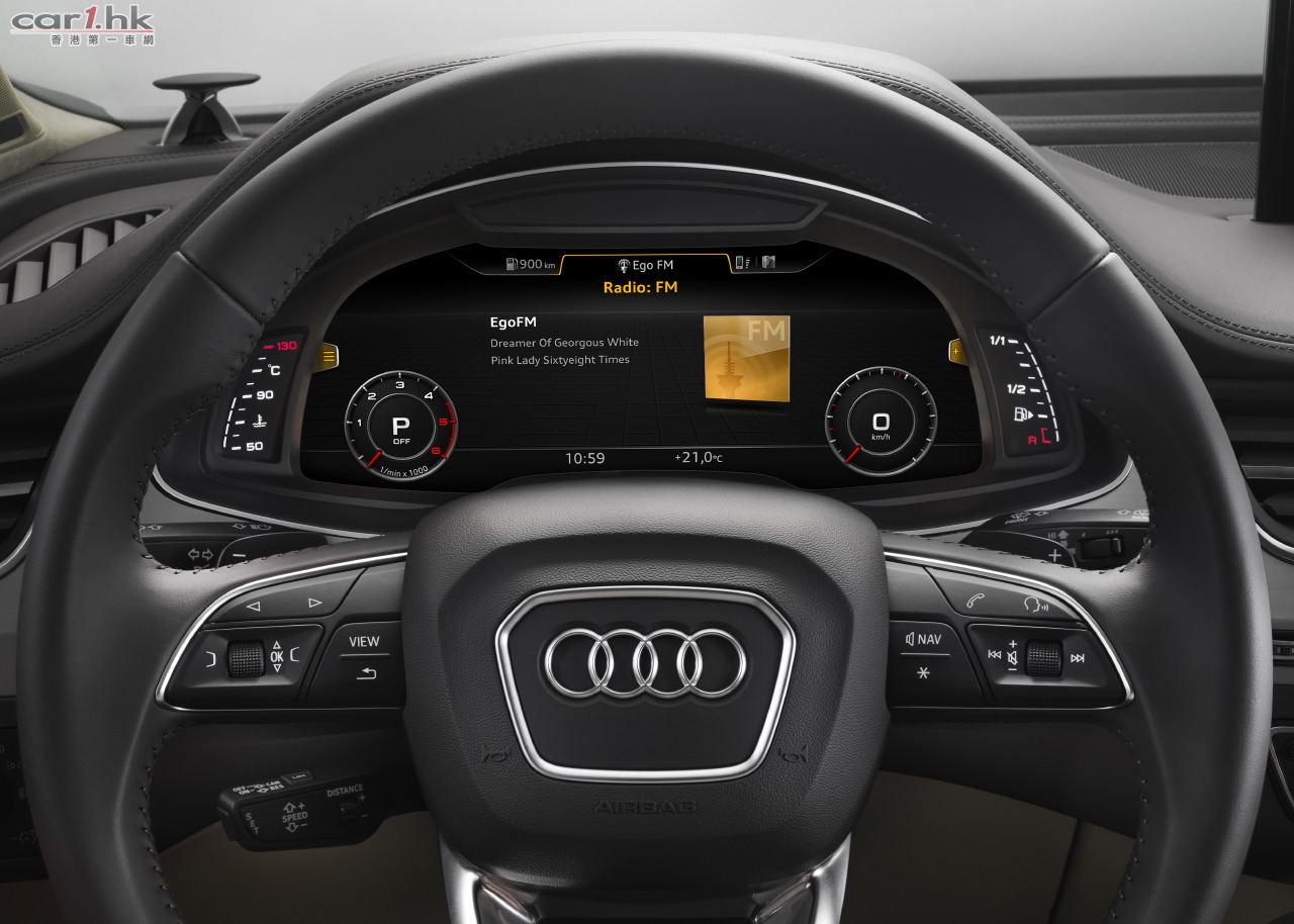 全新的Audi Q7更配備同級車系中最多最全面的輔助駕駛系統,應用範圍包括市區駕駛、泊車及公路巡航等狀況。在標準裝備中,已包括巡航控制、限速設定、泊車輔助連攝錄機等。新車更獲得歐洲新車評估計劃(NCAP)汽車撞擊測試中獲得五星最高評級,於正前方及兩側撞擊、行人保護及兒童安全中的測試結果都顯示,Audi Q7的安全性均為同級最高。如果用家選裝了主動氣壓懸掛系統,車上的Audi drive select駕駛選項系統就可配合變化出7種駕駛模式,分別是高效能、舒適、自動、動感、自主設定、爛路及提升/越野模式,系統更會同時應用車上的各組功能如波箱、電動輔助轉向、四輪轉向及引擎設定等,作出相應的配合。奧迪香港更首次提供原廠5年或10萬公里保用服務。