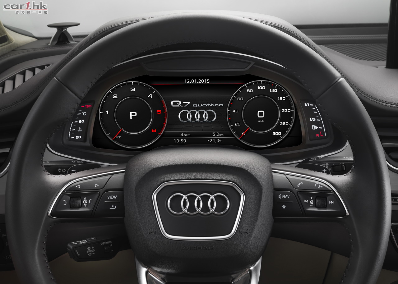 在全新Q7的標準配置上,儀錶組仍然採用傳統雙圓錶設計,而在兩個圓錶中,加入一個7吋的高解像彩色屏幕,用作顯示駕駛者資訊,如音響系統、導航地圖或夜視功能的黑白影像等。新車的MMI系統的使用方式參考智能電話,簡便快捷,所有指令均只需數個步驟完成,而聲控功能亦同樣先進,與連同全觸控系統的MMI導航系統相輔相承。用家可以在旋鈕上的觸控板作點選或書寫輸入指令,觸控時板面亦會有即時觸感反應。