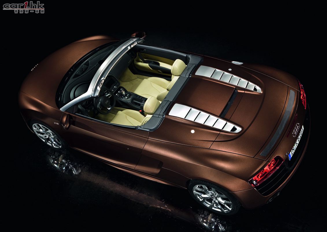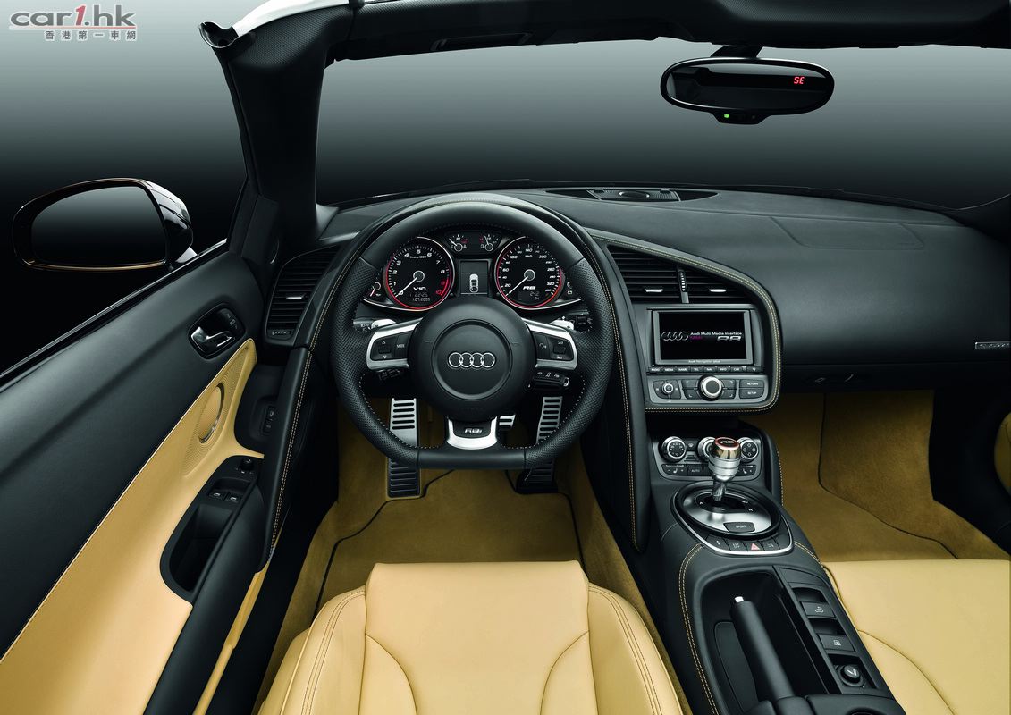搭載 R tronic 變速箱的 R8 5.2 FSI quattro 能夠在 3.9 秒完成 0-100km/h 加速,極速 316km/h,但是平均耗油量卻只是 13.7L/100km。Spyder 即開篷版為 4.1 秒,極速313km/h,平均耗油量 13.9L/100km。另一方面車輛本身雖然採用 MR 布局,但是前 / 後軸重量分配仍達到 44︰56(Spyder 版為 43︰57),因此高速掟彎都有保證。