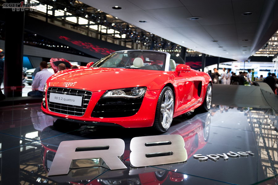 自 2006 年問世、曾經出現在電影《i-Robot(智能叛變)》而廣受注目的 Audi R8,亦專程來到上海湊熱鬧。今次展出的 R8 5.2 FSI quattro,搭配了 V10 5.2L 引擎,兩排汽缸室呈 90 度夾角,屬於 V 型引擎的黃金比例(最高 525hp及 391lb-ft 輸出),加上乾式油底有助降低引擎重心,整體提升車輛的轉向及操控極限。另外差速器能夠在後輪出現打滑並使差速器有更大摩擦力時,矽質油會變得更具黏性,摩擦力亦相對提高,此時前輪將會有更多扭力,協助車輛修正軌跡。