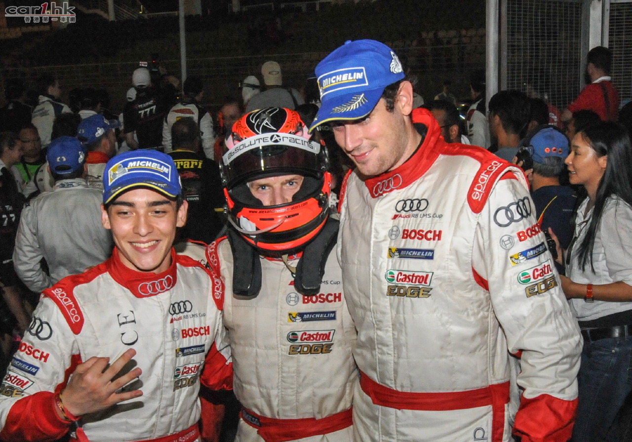 奧迪 R8 LMS 盃參賽車手李勇德(Jeffrey Lee)、方駿宇(Adderly Fong)和馬西莫·維納裡(Massimo Vignali)今天的比賽過程十分遺憾。他們共同駕駛的101號奧迪R8 LMS ultra賽車從第七位發車,下午表現一直不俗,然而在與另一輛賽車發生碰撞後雙雙偏離賽道,不得不退出比賽,最終完賽43圈。
