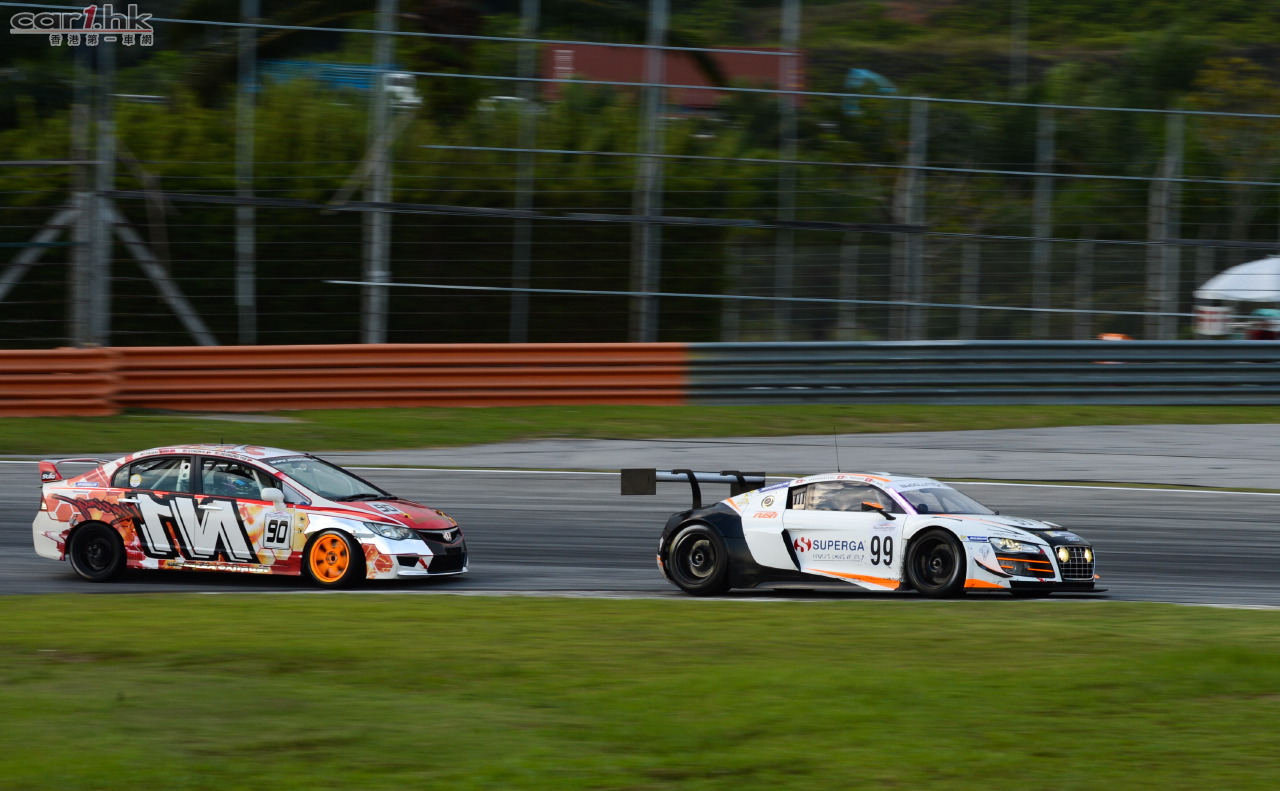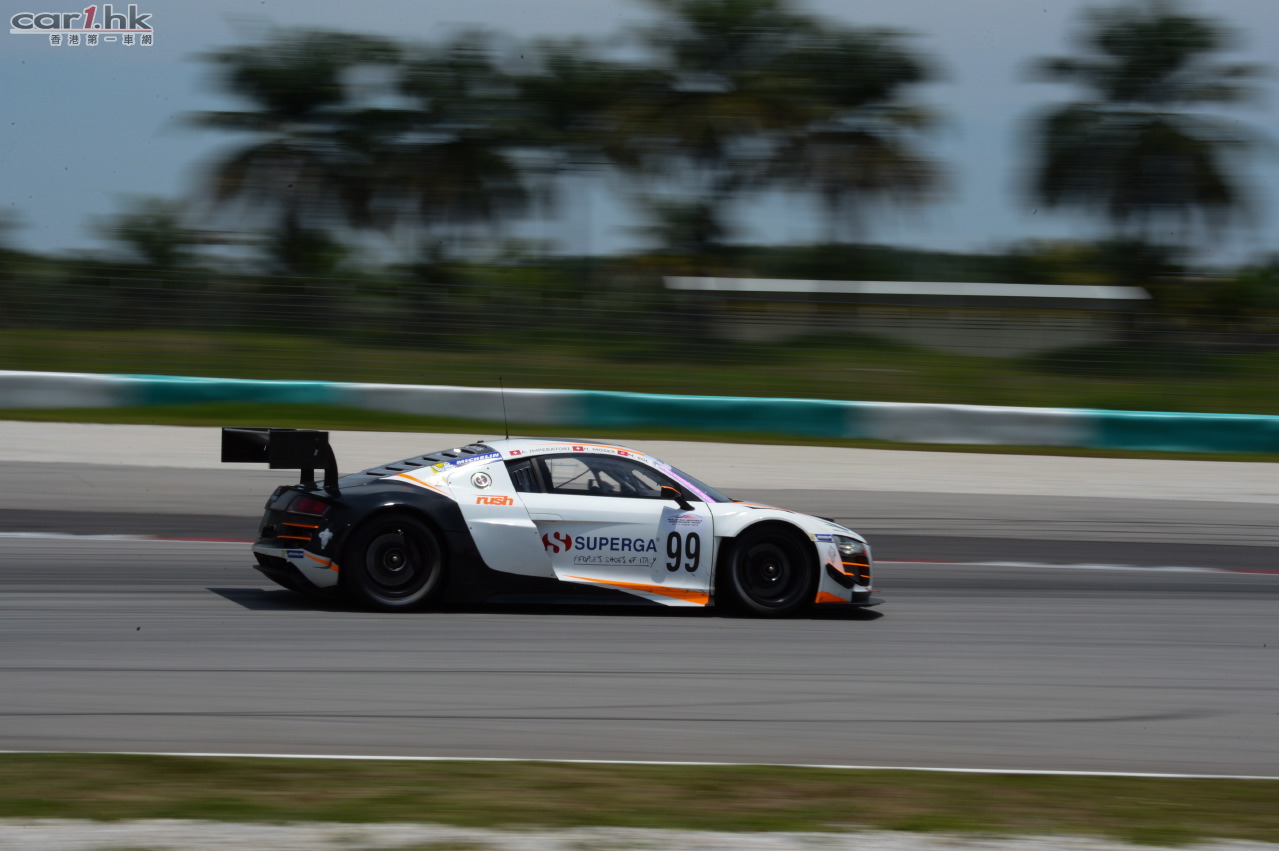 今天對於馬來西亞本土車手阿史拉夫·迪沃兒(Ashraff Dewal)、香港車手楊焯興(Jacky Yeung)和奧迪簽約車手李英健(Marchy Lee)來說則稍顯沮喪。他們搭檔駕駛的69號奧迪 R8 LMS 盃賽車下午不斷遭遇技術問題,技師團隊一直不懈努力,賽車還是在夜賽剛剛開始時遺憾退賽,最終完賽109圈。