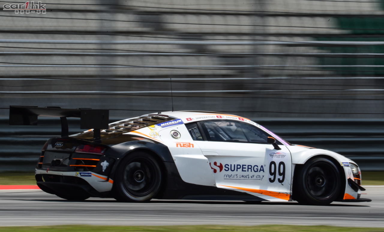 99號奧迪R8 LMS ultra賽車由瑞士車手Alexandre Imperatori、Henri Moser與奧迪香港車手蘇誠峻(Matt Solomon)共同駕駛,從第五位起步,幾圈過後即上升至第四位,並在下午隨後的比賽中一度越居第二。