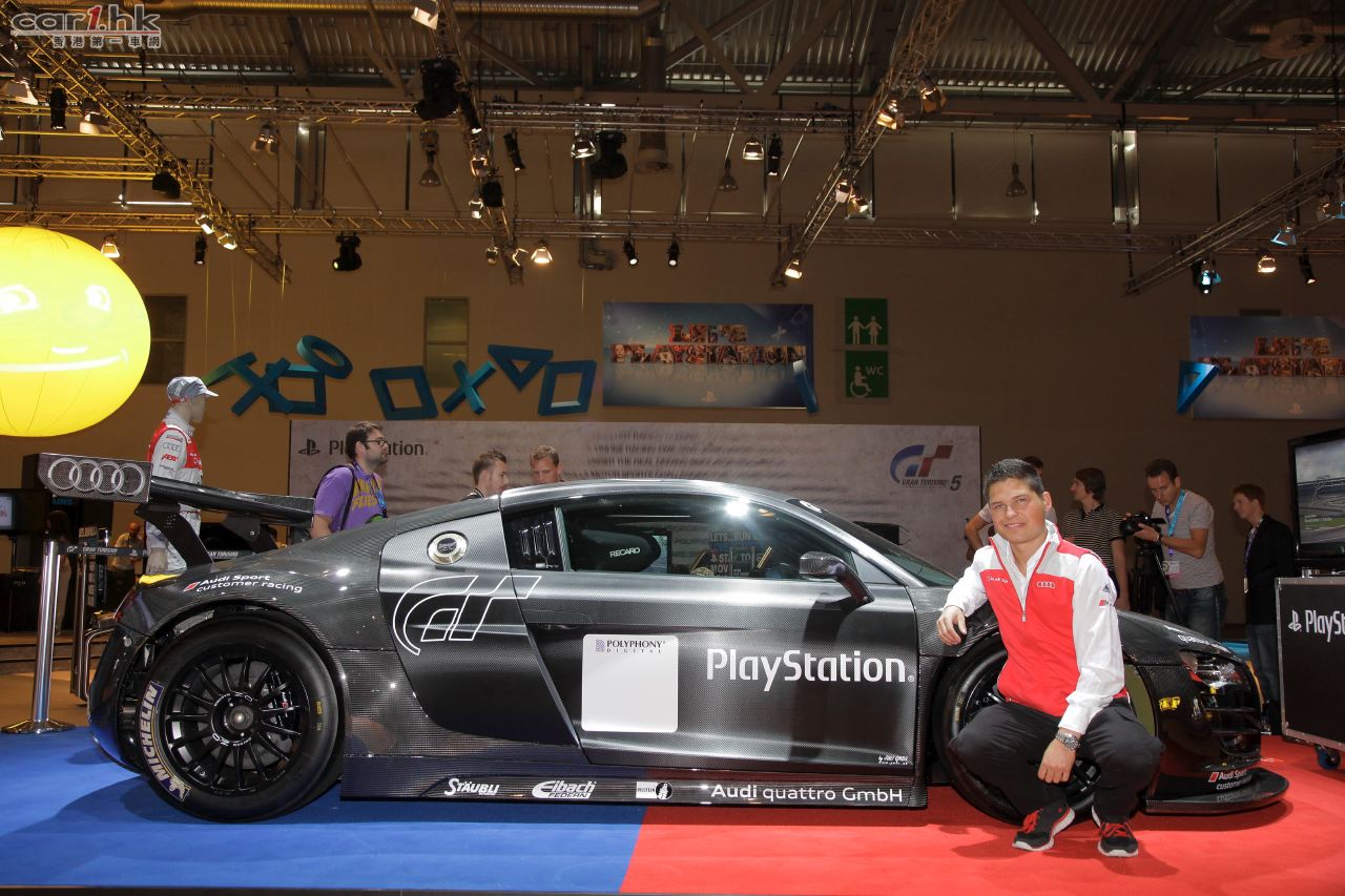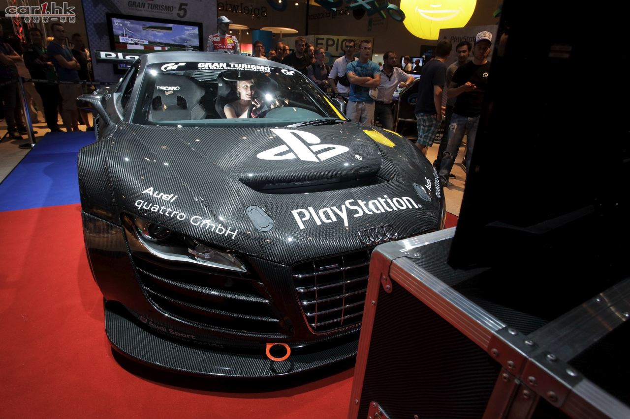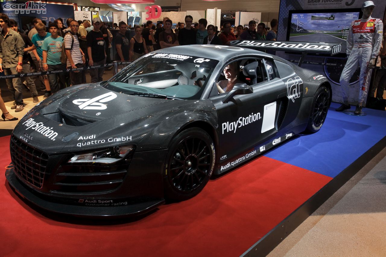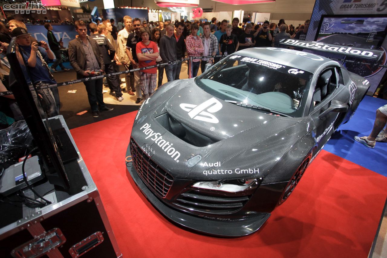 由 Audi quattro GmbH 與 Sony PlayStation 共同研發極具 GT3 級別賽車動感的 R8 LMS 賽車模擬器,於德國科隆 gamescom 2011 遊戲展中首度面世,並由歐洲 GT3 賽車冠軍 – Audi 主力賽車手 Christopher Mies 示範表演。Gamescom 2011 遊戲展的入場嘉賓可於展場內試玩,體驗 Audi R8 LMS 的賽車真實駕駛感。