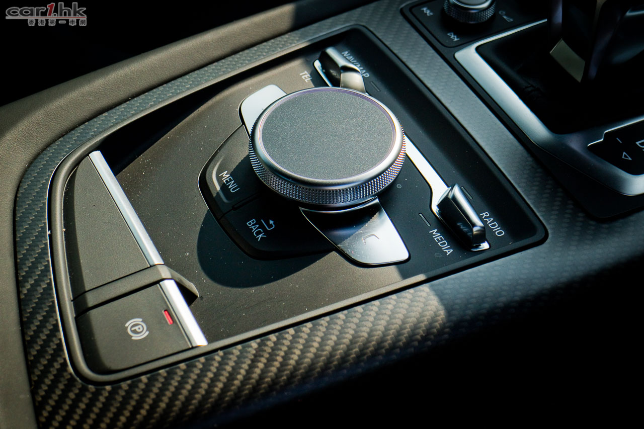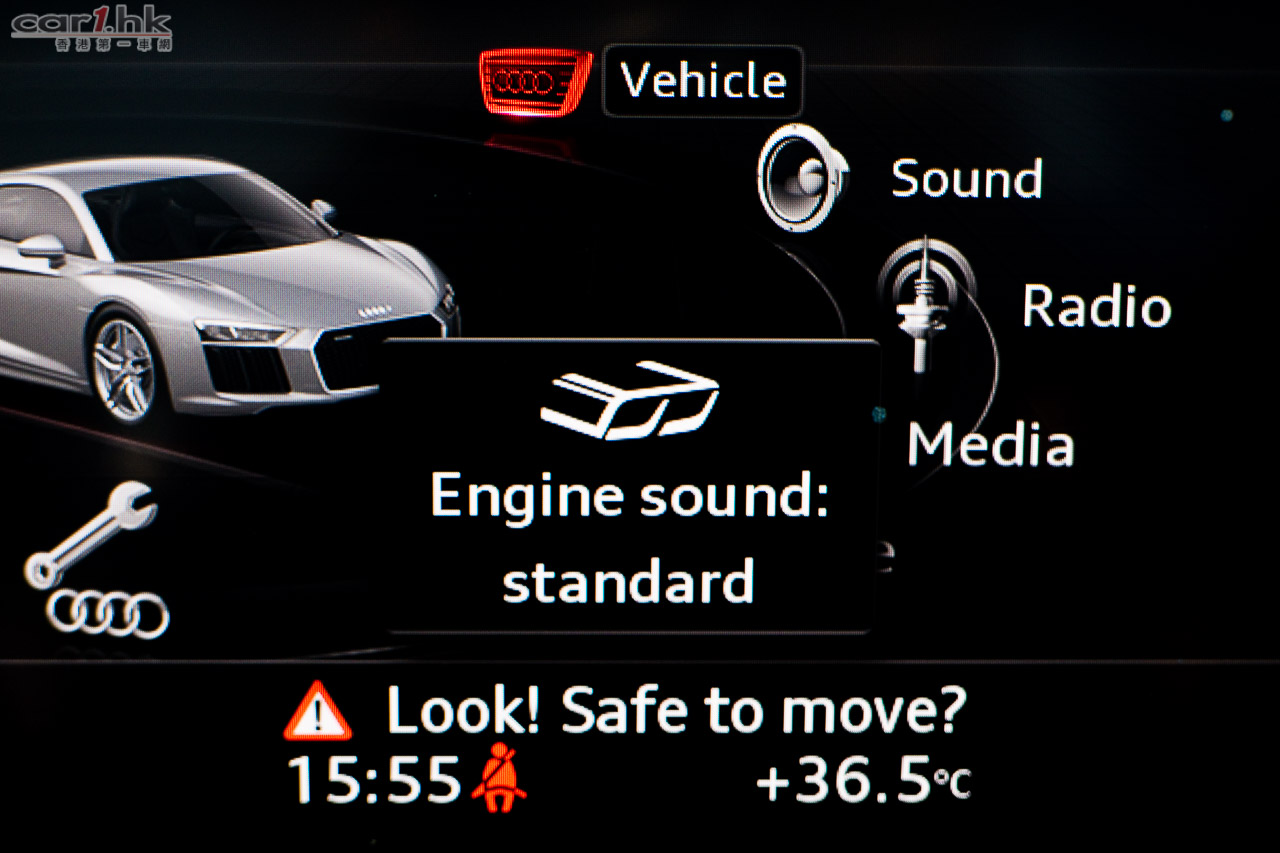 車廂佈局大轉變,其中一個最明顯的就是錶板使用了Audi Virtual Cockpit 全數碼化錶板,它由 12.3 吋十分清晰的 TFT 顯示屏打造出來,令中控台上方不再需要額外的顯示屏來顯示其他功能,令駕駛艙的空間感有輕微提升作用。貴為頂級版跑車,同時應用了 Audi Virtual Cockpit 全數碼化錶板,Audi 為它加入油溫、胎溫及 G-Force 等賽車常用資訊顯示功能,一般情況下其實未必對日常駕駛有太大作用,不過可能因此令車主想帶這部車到賽車場走一轉的意欲提升吧。另外,Virtual Cockpit 還可以因應個人喜好去變換錶板內容的「擺位」,如 GPS 地圖、車速、引擎轉數等等都可以變換位置。早年筆者在其他文章也討論過數碼化錶板是大勢所趨,要下放到更低階車型,需要時間去配合,因此 Audi 近年將新車慢慢由高至低慢慢去應用 Virtual Cockpit,對車主來說算是走在科技尖端的身份象徵。