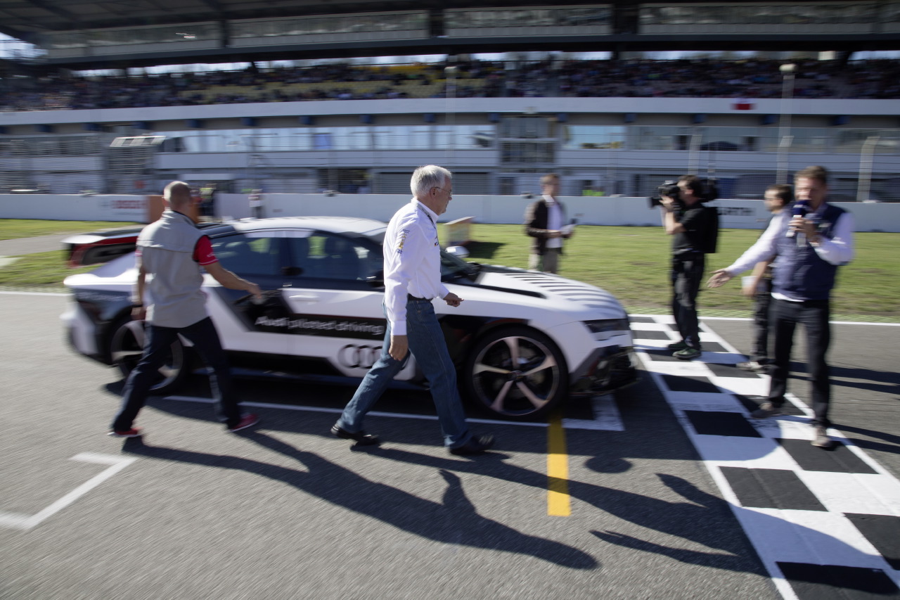 在賽道盡頭的十位開發團隊成員,包括項目總監Peter Bergmiller,他們目光同樣離不開即將上場的Audi RS 7無人駕駛概念車。經歷數個月來的研發,及達數千公里的無人駕駛測試,團隊的努力及奧迪於該技術方面的領先,終於得到驗證。