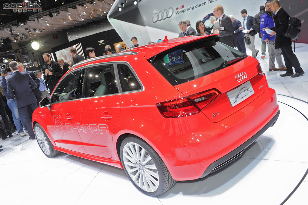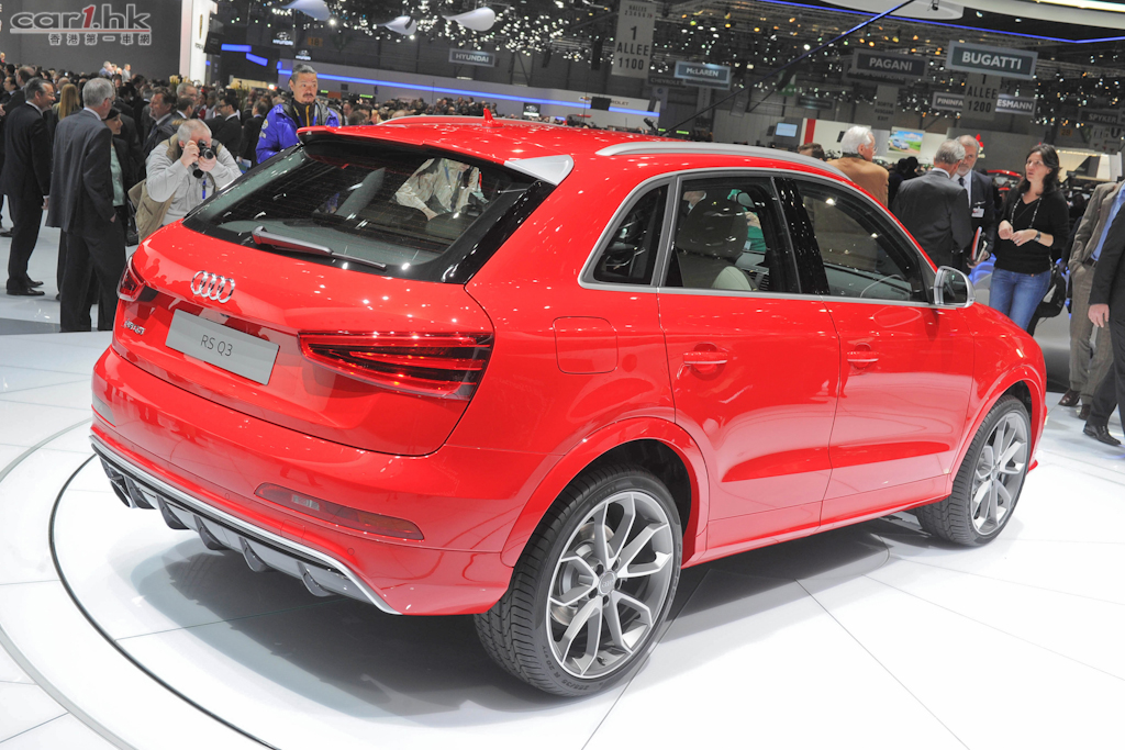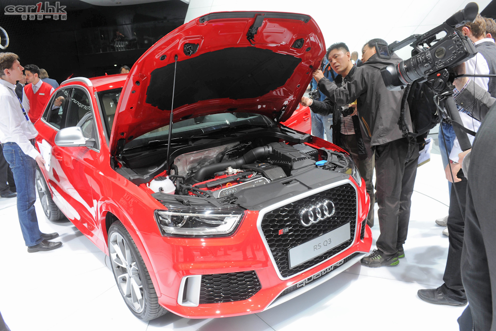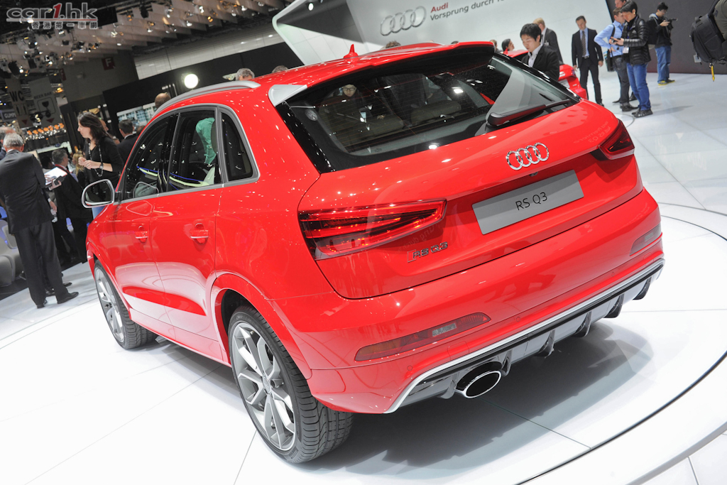 除了早前介紹的 A3 Sportback g-tron 外,Audi 在 2013 日內瓦還帶來了量產版 RS Q3 及概念車 A3 e-tron。RS Q3 外型變得更有侵略性,配合 19 吋輪圈,更具 SUV 霸氣。內籠使用 Alcantara 運動化座椅,以及大量型格的鋼琴黑和碳纖維內飾板。RS Q3 搭載 2.5 升渦輪增壓引可輸出 310 匹最大馬力和43kgm的最大扭力,配合七速 S tronic 變速箱和 quattro 全時四輪驅動系統,從靜止加速到 100km/h 只需 5.5 秒,極速為 250km/h。Audi 表示 RS Q3 百公里平均油耗為 8.8 公升,二氧化碳排放量為 206g/km。