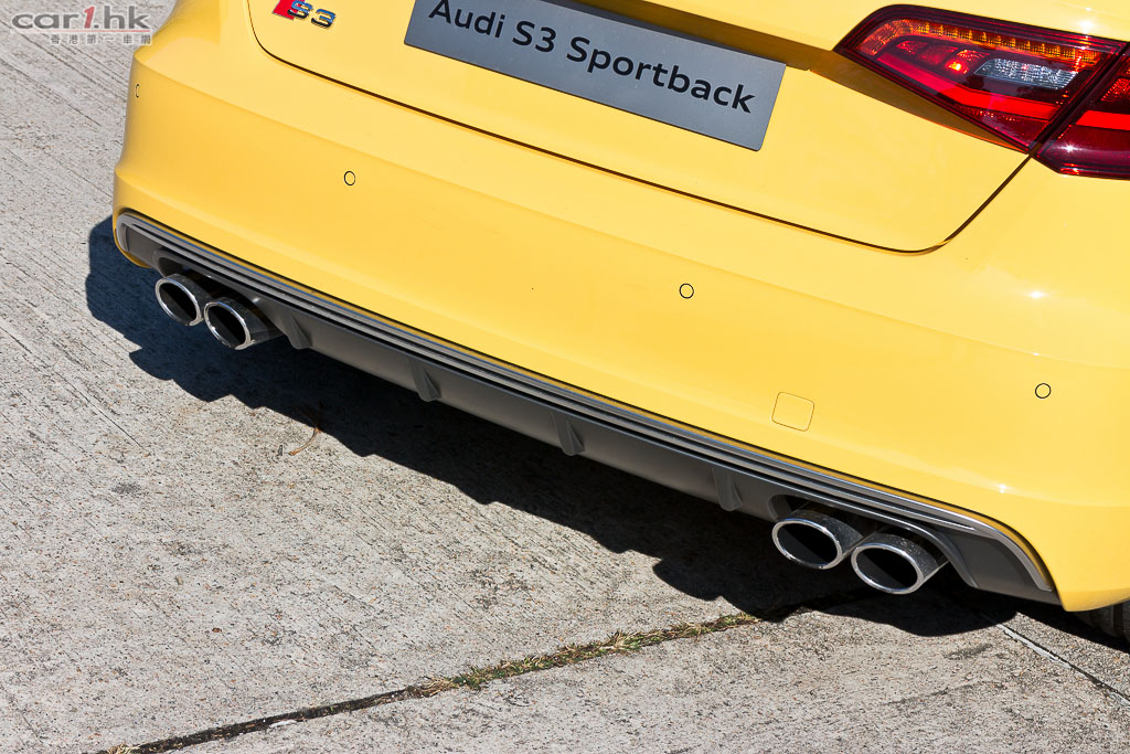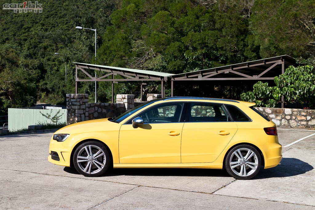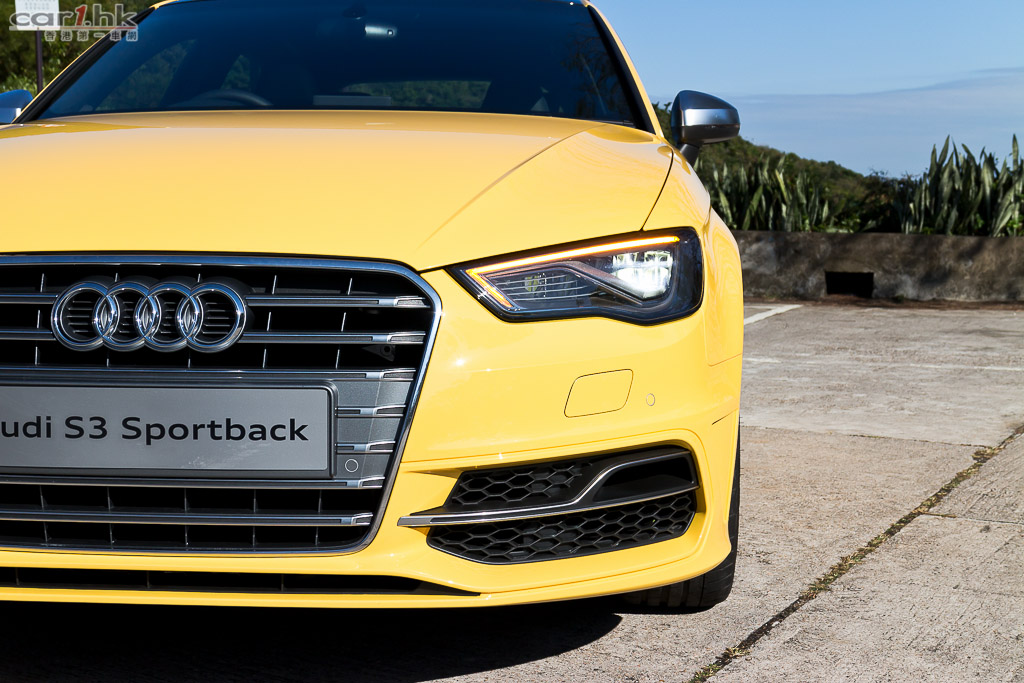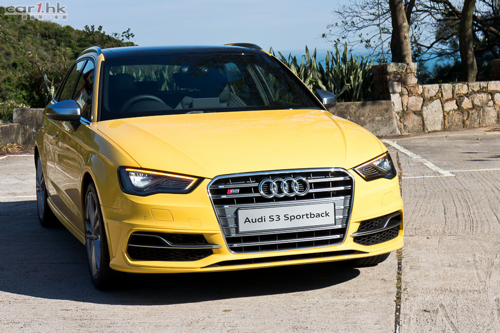Audi 2013 年尾在香港剛推出全新 A3 Sportback,車子與第 7 代 VW Golf 共用稱為「MQB」(modular transverse platform) 的輕量化車架,車殼含大量高剛性鋼,前沙板和頭冚用鋁,懸掛增加鋁部件用量,加上其他可慳則慳的減重設計,駕駛感覺有 feel 得到的輕巧,作為 5 門小形旅行車,有比 A1 較大的載人和載物空間,有 Audi 式的內外設計;車系中,122 匹的 1.4 TFSI 賣 30 萬,180 匹的1.8 TFSI 賣 37 萬,有 7 速 S tronic 雙離合器波箱可玩、Audi Drive Select 系統可撳,但沒有狠勁的加速和操控性能,車迷自然對其較高性能的型號虎視眈眈。這部 S3 是虎視眈眈數月後的結果,S3 原廠有 3 門斜尾和這部賣 $534,800 的 5 門 Sportback 版本,車子有足 300 匹輸出,0-100km/h 只需 4.9 秒,單看數字已令人興奮。