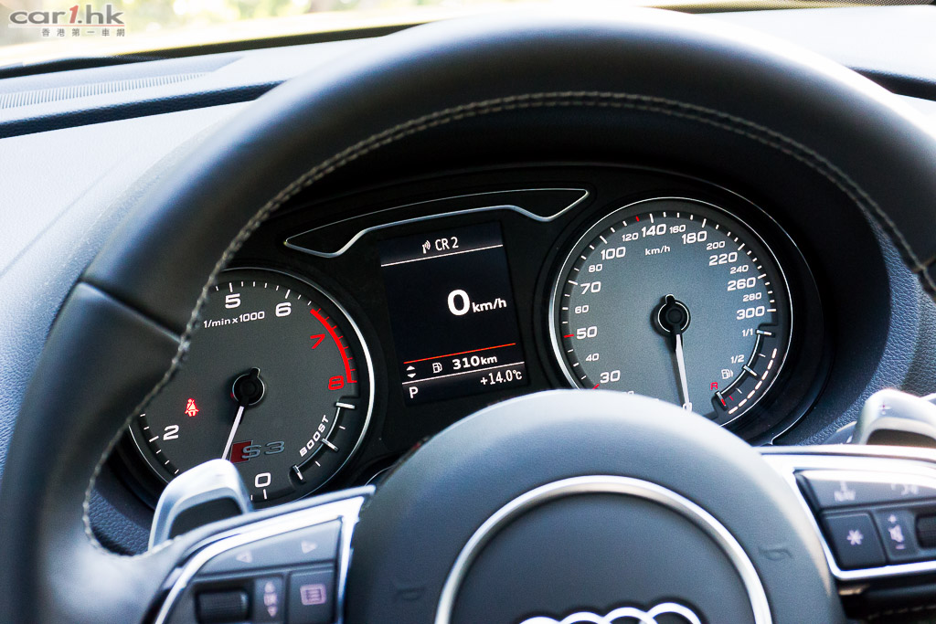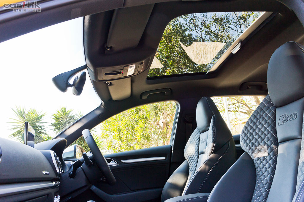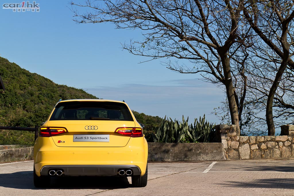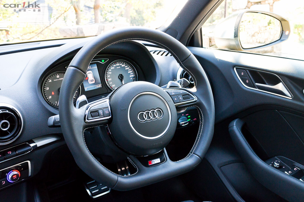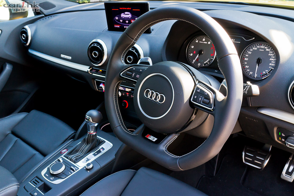 Audi 2013 年尾在香港剛推出全新 A3 Sportback,車子與第 7 代 VW Golf 共用稱為「MQB」(modular transverse platform) 的輕量化車架,車殼含大量高剛性鋼,前沙板和頭冚用鋁,懸掛增加鋁部件用量,加上其他可慳則慳的減重設計,駕駛感覺有 feel 得到的輕巧,作為 5 門小形旅行車,有比 A1 較大的載人和載物空間,有 Audi 式的內外設計;車系中,122 匹的 1.4 TFSI 賣 30 萬,180 匹的1.8 TFSI 賣 37 萬,有 7 速 S tronic 雙離合器波箱可玩、Audi Drive Select 系統可撳,但沒有狠勁的加速和操控性能,車迷自然對其較高性能的型號虎視眈眈。這部 S3 是虎視眈眈數月後的結果,S3 原廠有 3 門斜尾和這部賣 $534,800 的 5 門 Sportback 版本,車子有足 300 匹輸出,0-100km/h 只需 4.9 秒,單看數字已令人興奮。