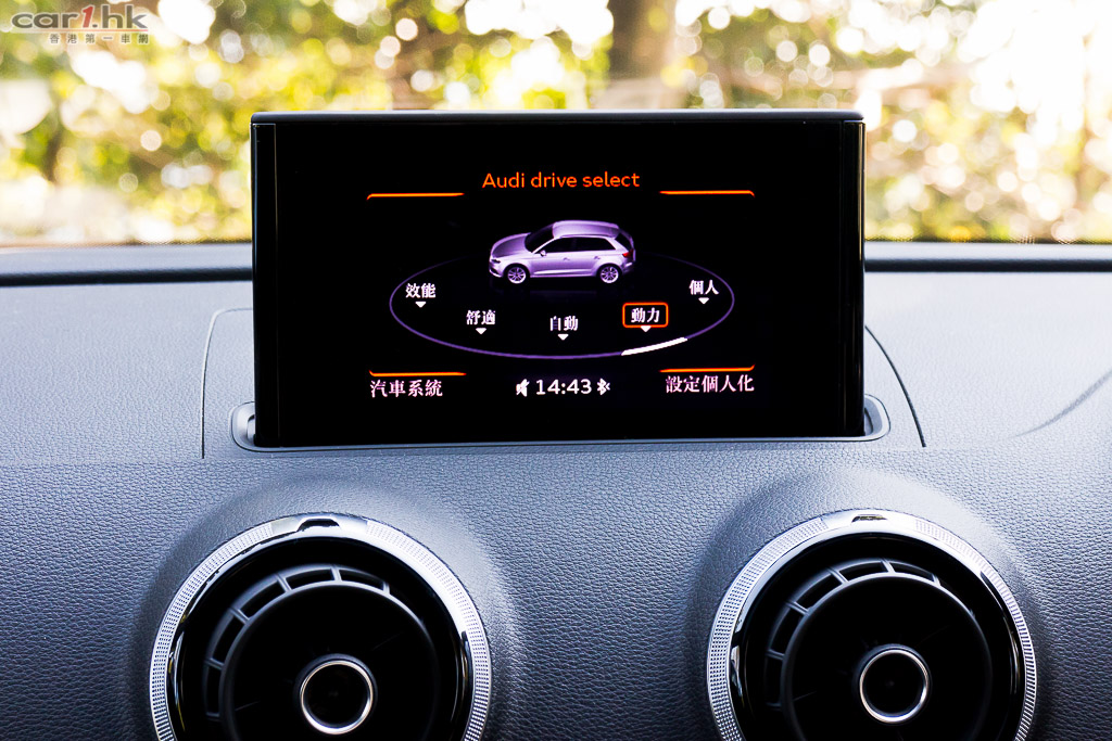 普通 A3 用 7 速 S tronic 波箱,S3 和 Golf GTI 一樣是 6 速,波箱有向下啪的 S mode 和啪左的手動 M mode,同樣雙離合器波箱的無縫轉波反應和拖波補油。Audi Drive Select 系統與 A3 一樣,在中控台上的多了個直接按鈕,無需行車中手用滑鼠、眼望 mon 的揀選一輪,而且只可選引擎/波廂反應和軚盤重量,不似更高級的 Audi 車系般更可選懸掛和排氣聲浪等;聲線雄厚的 S3,其排氣喉設有自動活瓣,盡油加速時更會放盡喉嚨的爆聲,車子於前橫樑更裝有電子控制的傳聲器 sound actuator,將靚靚的引擎聲浪帶入車內。