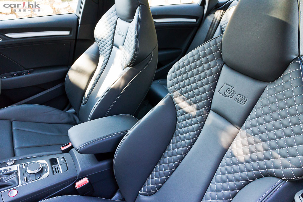 連頭枕的格仔縫線 sports seats,其實原廠屬 option 選項;S3 除排氣喉設有自動活瓣外,更於前橫樑裝有電子控制的傳聲器 sound actuator,將靚靚引擎聲浪帶入車內。