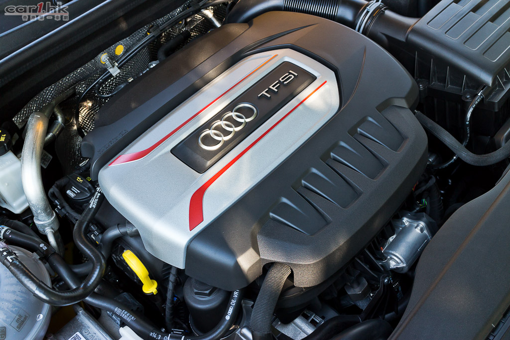 不同於新 Golf GTI 將舊有「EA888」2.0 升 4 汽缸 turbo 引擎 upgrade 至 220 匹使用,S3 與 A3(和新 Golf 1.4)一樣改用那 12 度向後傾斜(即排氣出口倒轉面壁)的全新「EA211」系列 4 汽缸 turbo 引擎。S3 同樣有鋁質汽缸體,綜合排氣岐管的水冷汽缸頂;同樣的 Audi Valvelift system 活瓣可變控制系統,廢氣活瓣有兩段可變升程,進氣凸輪軸有 30 度可變角度,廢氣凸輪軸有 60 度可變。作為高性能型號的 S3,要改用強化的活塞連杆和活塞螺絲,經強化的鐵質曲軸底盤,活塞裙腳和平衡軸的滾筒軸承有降低磨擦度的塗層 coating。渦輪增壓器最高可谷出 1.2 bar 壓力,380 牛頓米的扭力輸出,在圖表上就如政府官員說話如人肉錄音機般聲調的平坦。