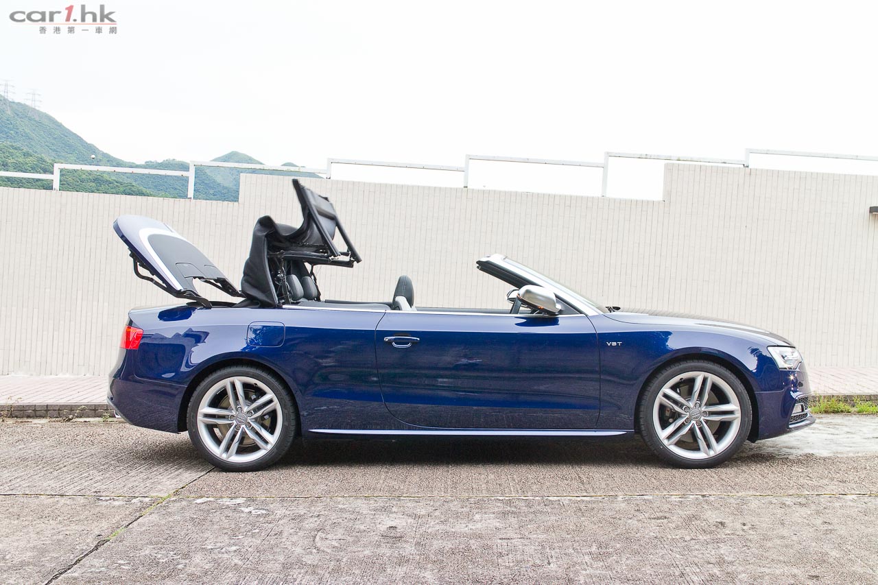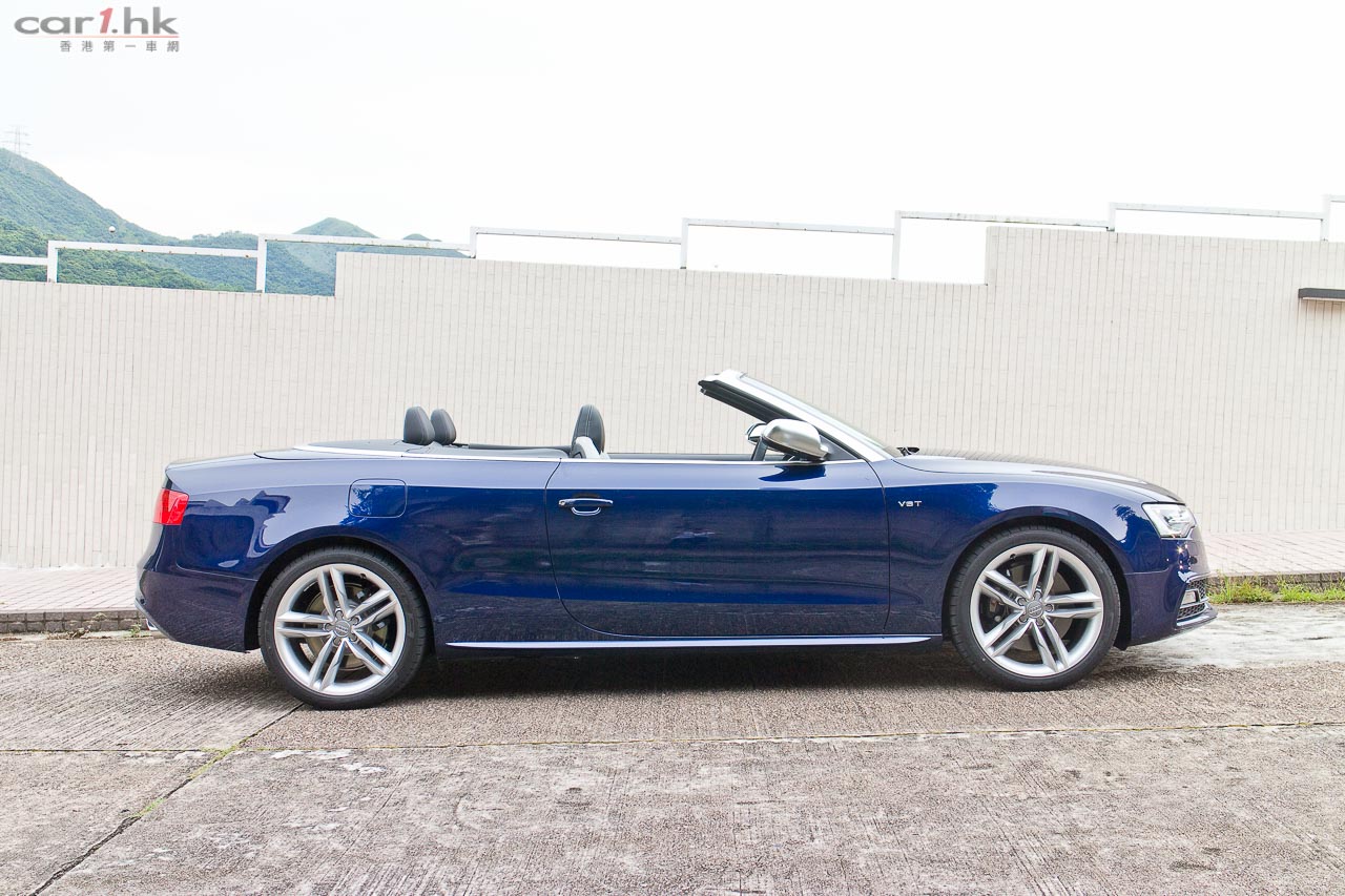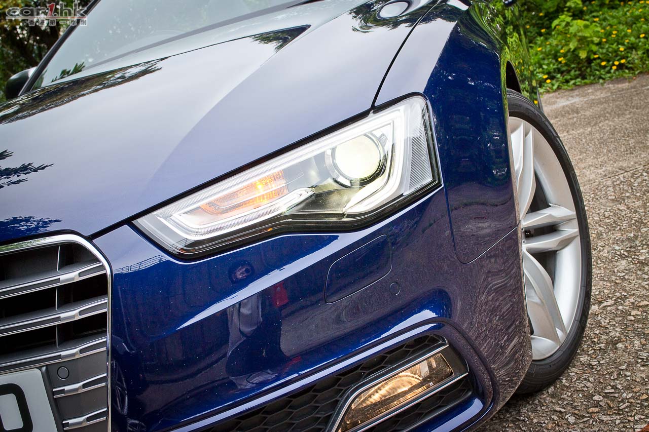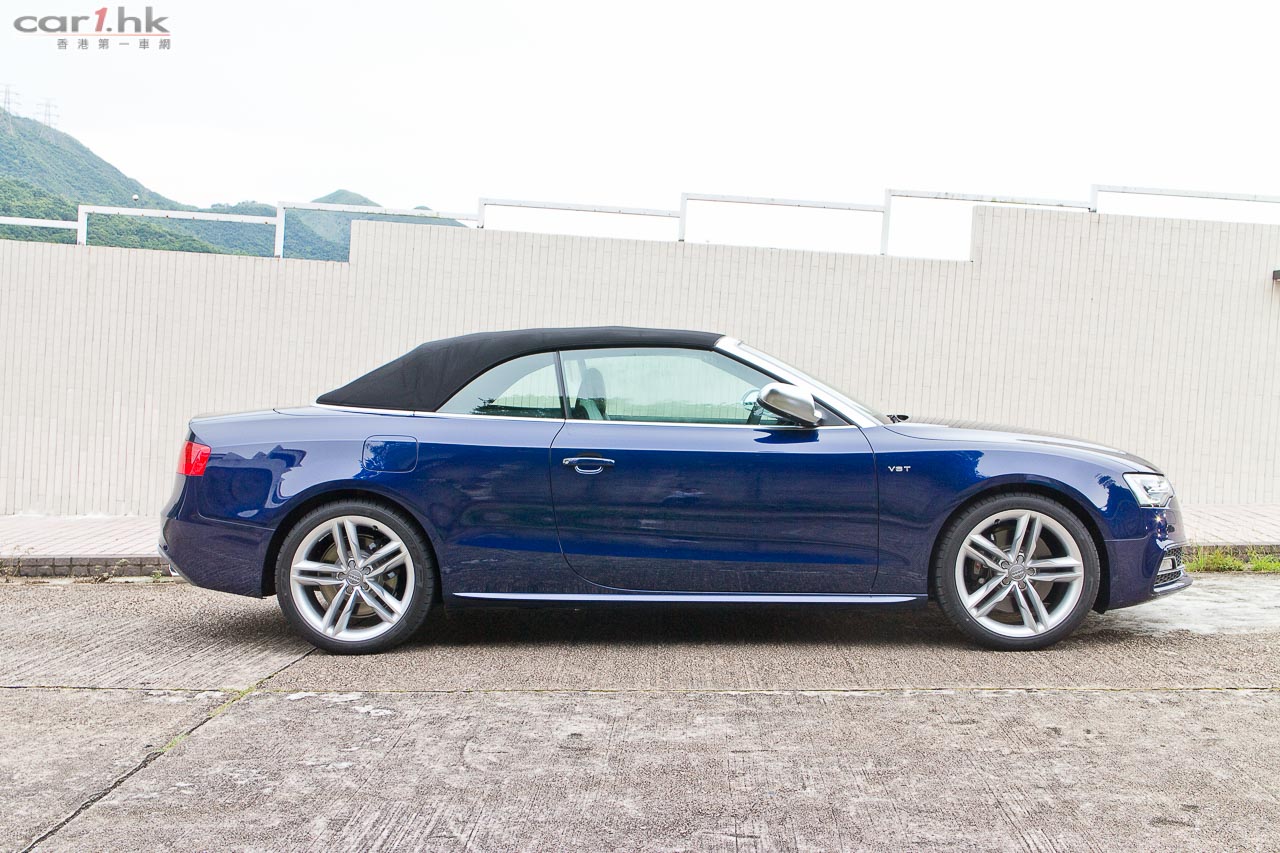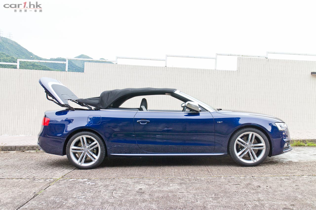 其實今次試駕兩部的 S5 Sportback & Cabriolet 都是應用同一心臟,外觀和設備也相近,一眼就看出它是 Audi S5 系列。S5 全車用上擾流包圍,車頭鬼面罩、軚盤、門檻金屬版都印有 S5 字樣,以突顯它的身份。今次 Audi 為 S 車系換上新的轉檔撥片,這兩部車也不例外,更大更有金屬感,使用起來比過往的就手得多。平底的軚盤也是預設設備,令到駕駛時減小頂腳的機會,換來更快速的軚盤操作。S5 配置了多個頂級設備,如 Xenon Plus 和日光 LED 頭燈、19 吋 5 幅式高透視輪圈、MMI 多媒體音響系統、3 區恆溫冷氣、藍牙聽歌手機免提系統、B & O 音響、S Sports 懸掛、雙出尾喉都是它們的裝備。而 Sportback 版還有天窗作賣點,開篷版在 50km/h 下可操作車篷的開關,開啟只需 15 秒,關閉是 17 秒。如果真是不幸運忽然下雨,它仍可以慢車將車篷關起來。