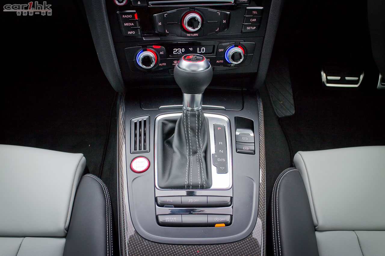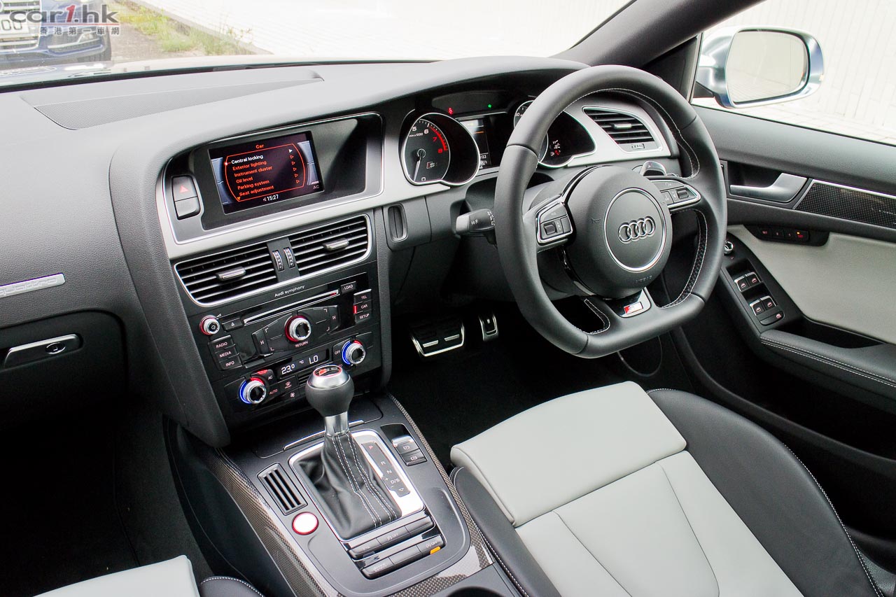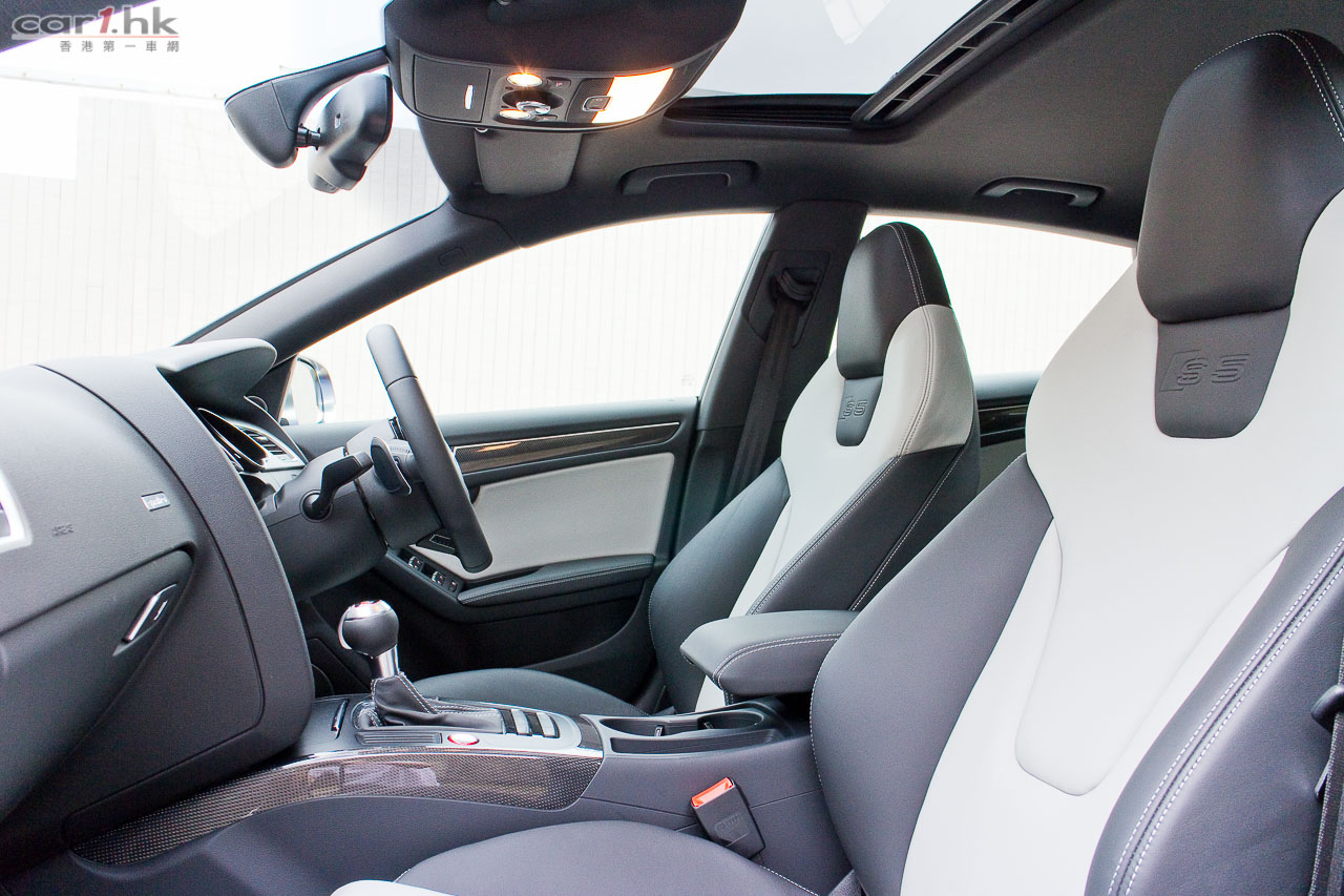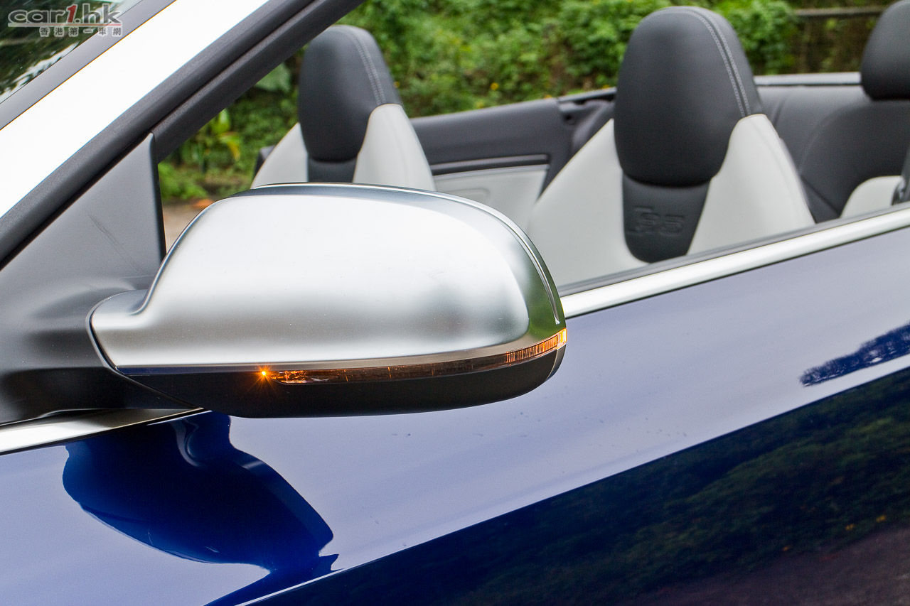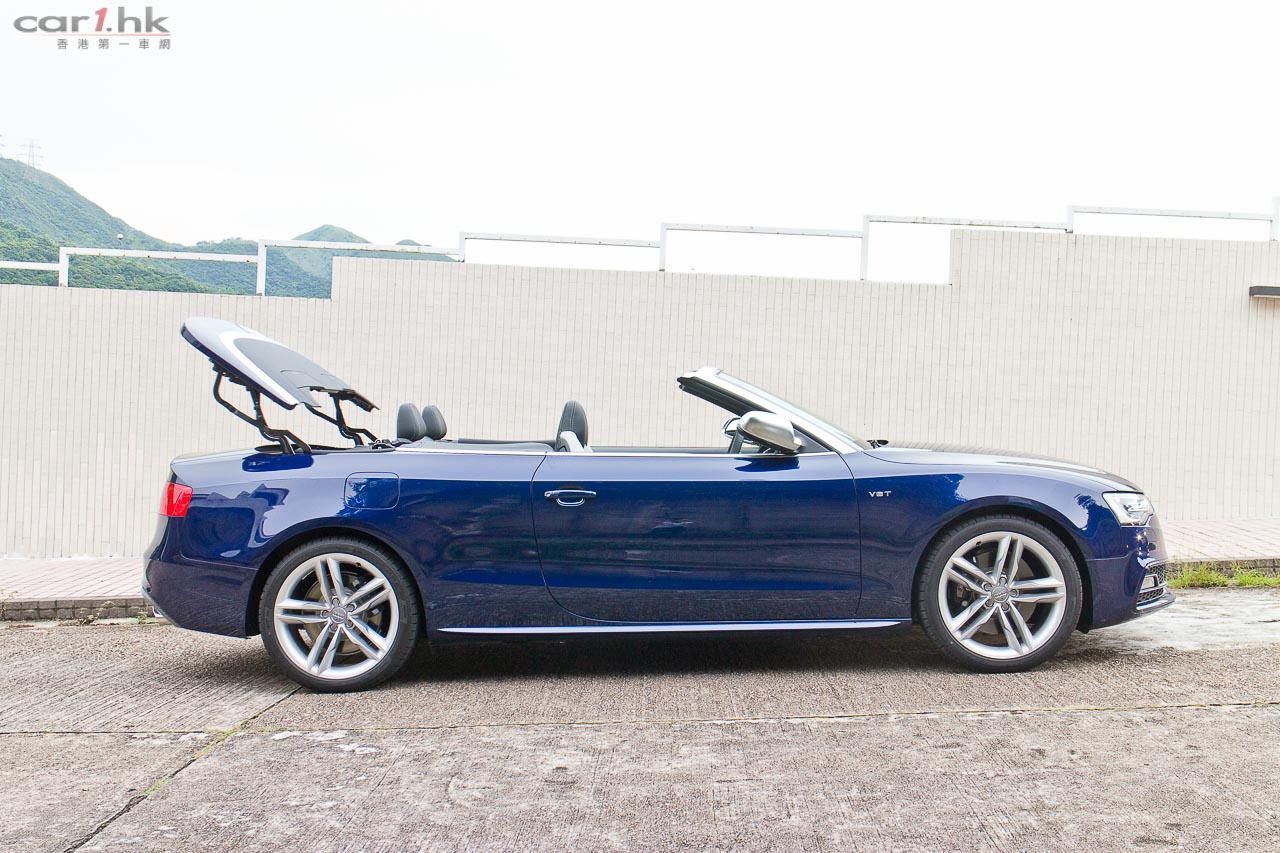 其實今次試駕兩部的 S5 Sportback & Cabriolet 都是應用同一心臟,外觀和設備也相近,一眼就看出它是 Audi S5 系列。S5 全車用上擾流包圍,車頭鬼面罩、軚盤、門檻金屬版都印有 S5 字樣,以突顯它的身份。今次 Audi 為 S 車系換上新的轉檔撥片,這兩部車也不例外,更大更有金屬感,使用起來比過往的就手得多。平底的軚盤也是預設設備,令到駕駛時減小頂腳的機會,換來更快速的軚盤操作。S5 配置了多個頂級設備,如 Xenon Plus 和日光 LED 頭燈、19 吋 5 幅式高透視輪圈、MMI 多媒體音響系統、3 區恆溫冷氣、藍牙聽歌手機免提系統、B & O 音響、S Sports 懸掛、雙出尾喉都是它們的裝備。而 Sportback 版還有天窗作賣點,開篷版在 50km/h 下可操作車篷的開關,開啟只需 15 秒,關閉是 17 秒。如果真是不幸運忽然下雨,它仍可以慢車將車篷關起來。