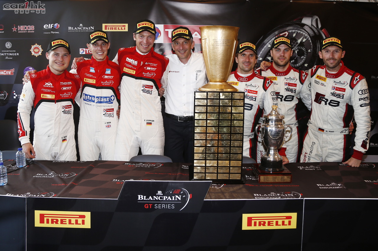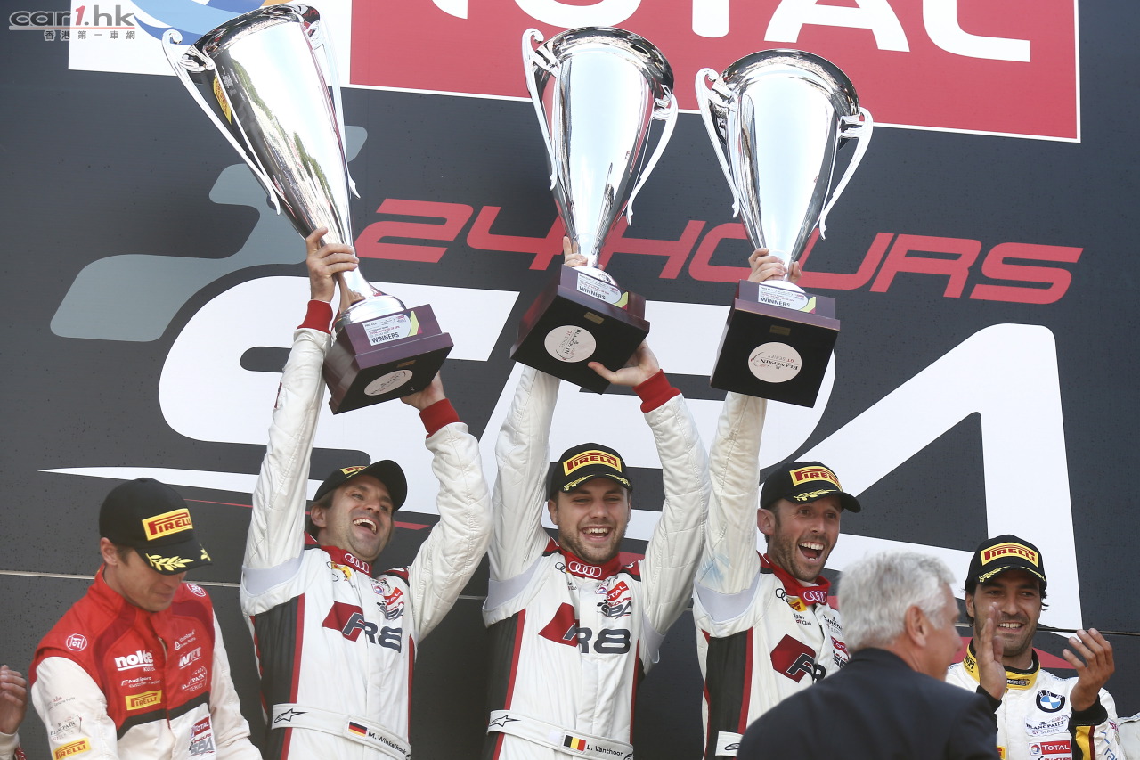 代表Audi Club Team WRT車隊出賽的三位車手Christopher Mies、James Nash及Frank Stippler在星期六的「Drive-through」處罰下失去寶貴時間,最後只能以季軍姿態登上頒獎台。Saintéloc Racing車隊在三位車手Grégory Guilvert、Stéphane Ortelli和Edward Sandström的風馳電掣下,在今場賽事中以第四名衝線,榮登整個寶珀耐力賽中之季軍位置。