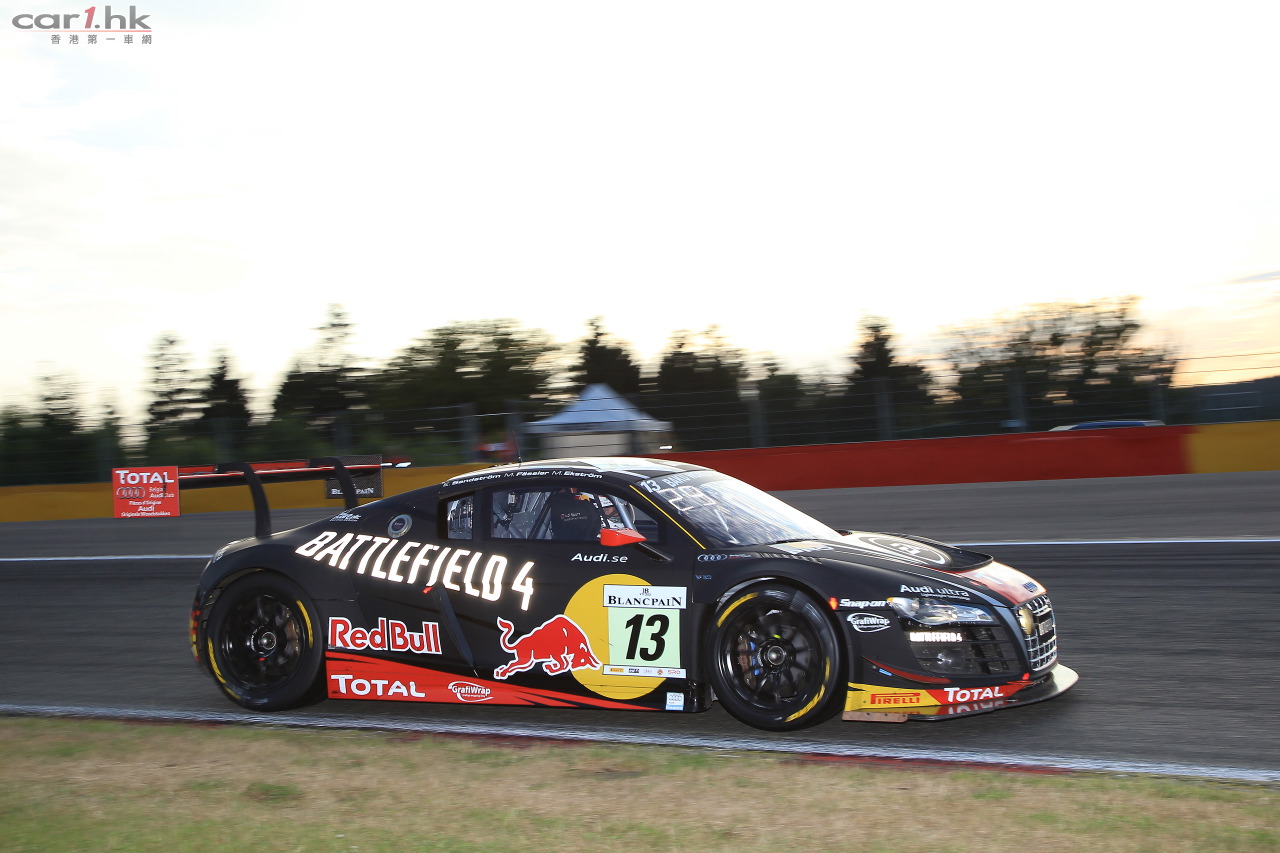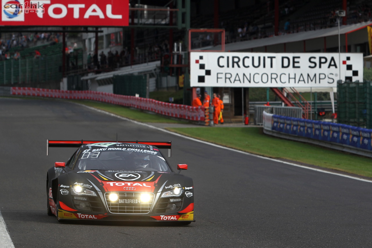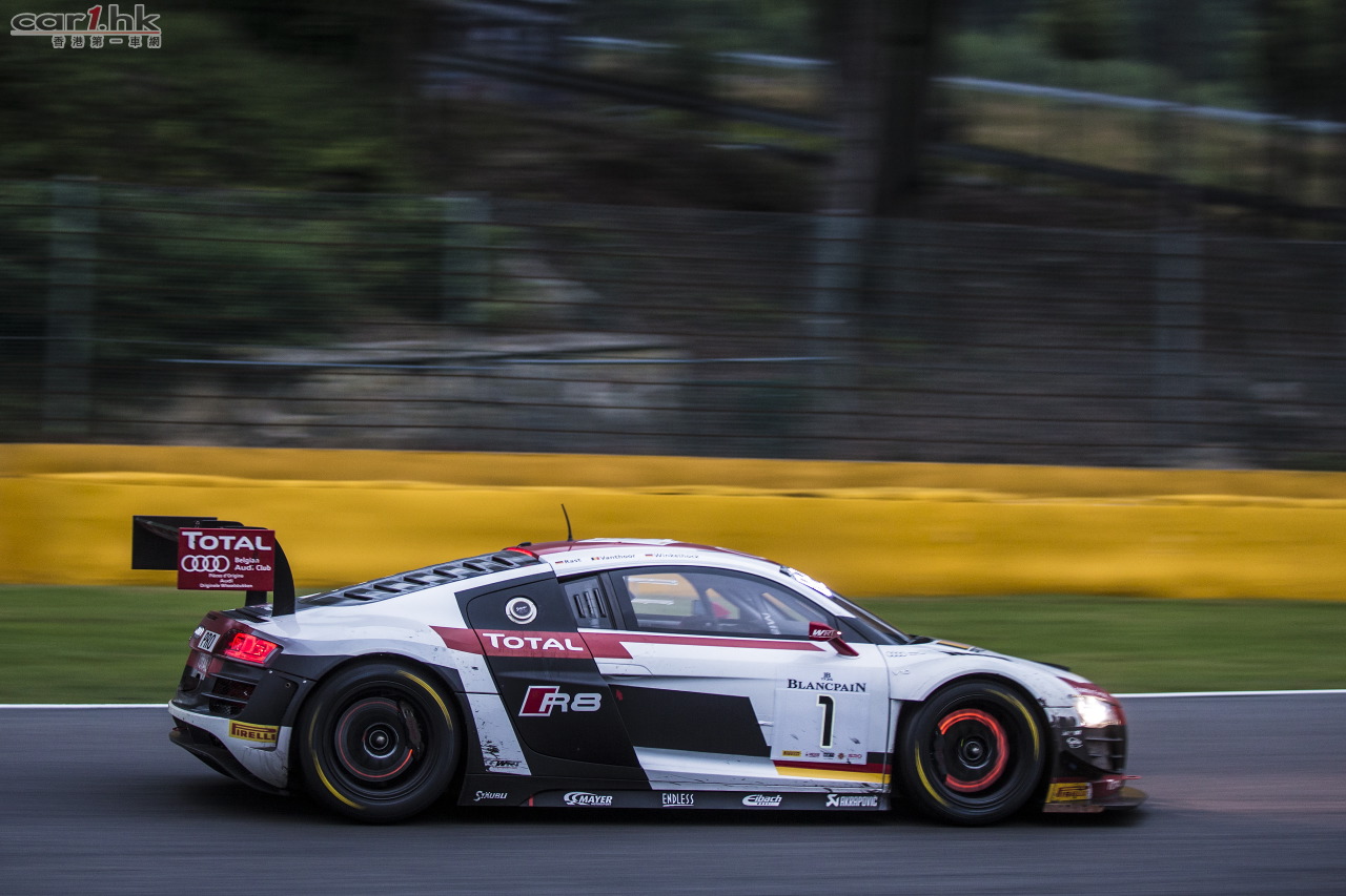 Laurens Vanthoor 、René Rast 及Markus Winkelhock 在桿位出發,並於首兩小時一直領先。但於晚上六時至八時間發生的多宗意外令賽場一片混亂,更需經過四次由安全車帶領的階段。周六晚為各隊排名變更的關鍵時刻,奧迪的Belgian Audi Club Team WRT車隊跌至第六位,但於比賽進行至第七個小時,Laurens Vanthoor 已取回首席位置,同時各車隊不斷改變進入維修站的策略,亦令領先車隊的排名不斷改變。翌日早上,寶馬派出的 Marc VDS Racing 車隊處於有利位置,而三位奧迪車手則逐漸失去優勢。比賽進行到第21個小時後,René Rast爭回首位,但因更換煞車片而稍為落後。其後,奧迪車手經過連場激戰,最終於比賽結束前75分鐘重奪首席之位。然而,比賽餘下的一小時當中,各個車隊採用靈活多變的維修站策略讓排名爭持激烈。最終奧迪慶祝繼2011年及2012年後,第三度奪得斯帕耐力賽的冠軍殊榮。寶珀耐力賽系列最終回將於9月21日在紐布靈舉行,而Laurens Vanthoor則於排名榜中領先其他奧迪車手。