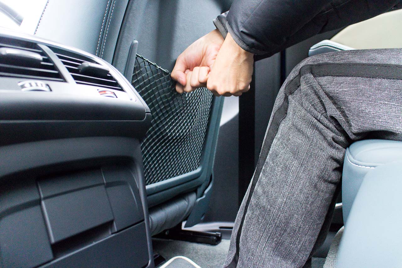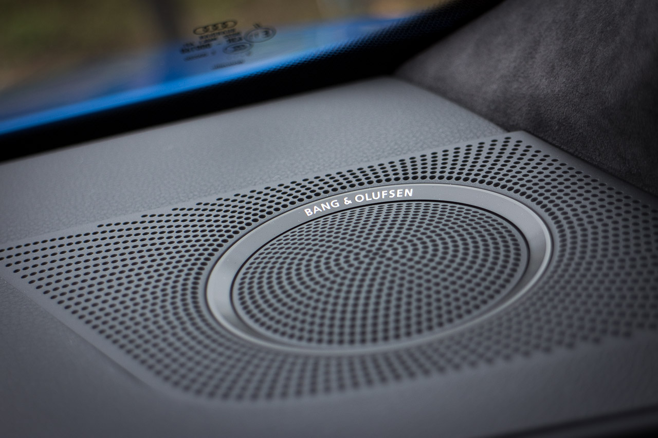 SQ5 以原廠屬 option 的 Carbon Atlas 碳纖紋作標準裝備,demo 車則改用有鋁夾層的黑色 Beaufort 木紋飾板,以及 Moon Silver 灰色猄皮天花,非常特別。
