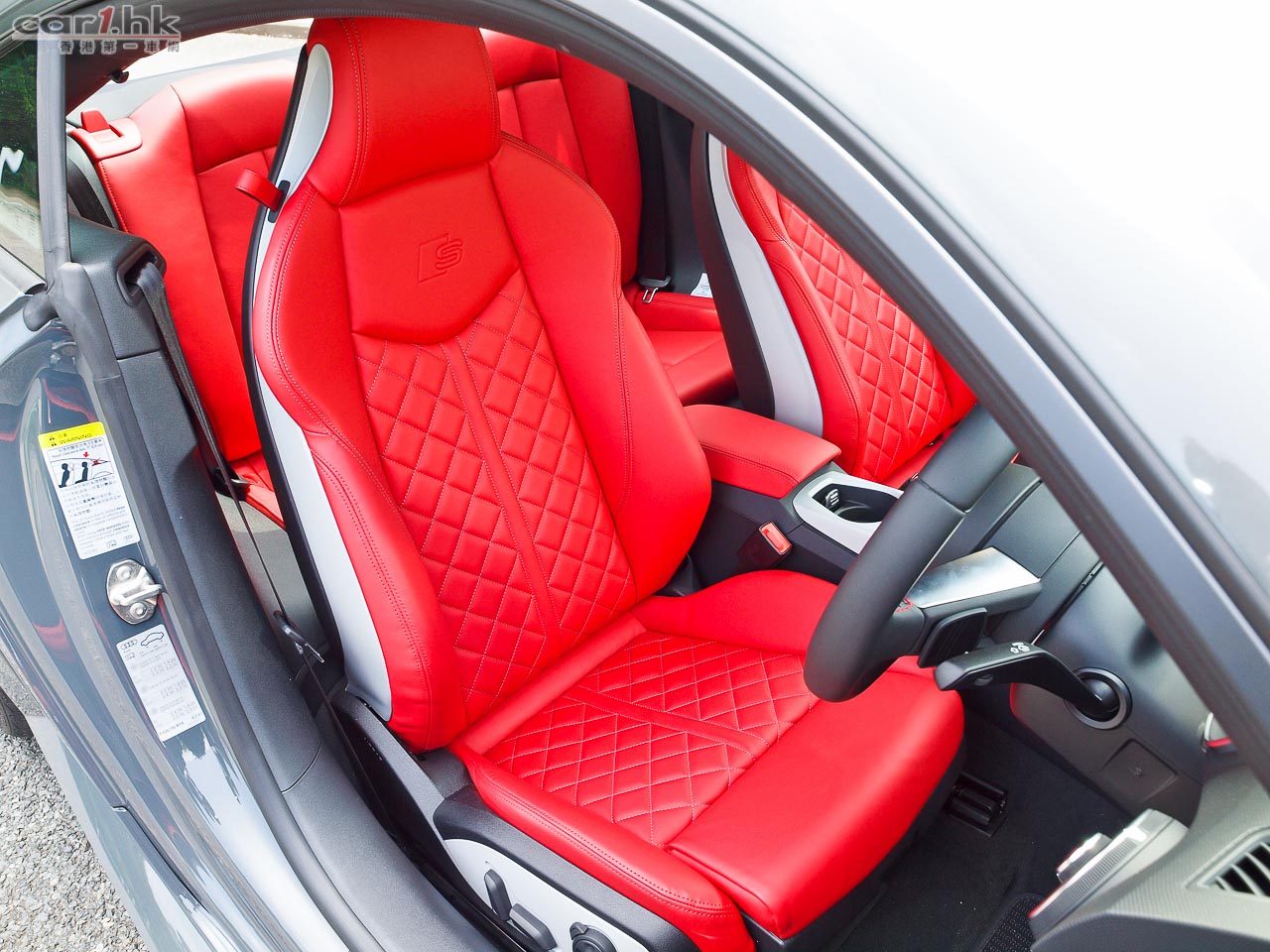 Sepang Blue metallic 藍和 Panther Black 黑是 TTS 專有的車身顏色,車廂色調有 Nano Grey 灰或是圖中的 Tango Red 紅色。