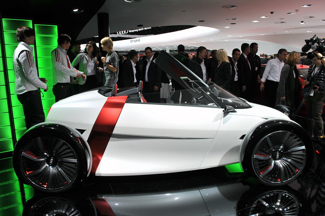 顛覆傳統的新款車型 Audi urban concept 終於亮相,1+1 座艙設計,切合擠擁的城市環境;以超輕量化物料製造,簡約藝術設計理念令人眼前一亮,配備兩個 e-tron 電動馬達及鋰離子電池, 切合未來環保生活主義,更提供充足的驅動力和加速力。