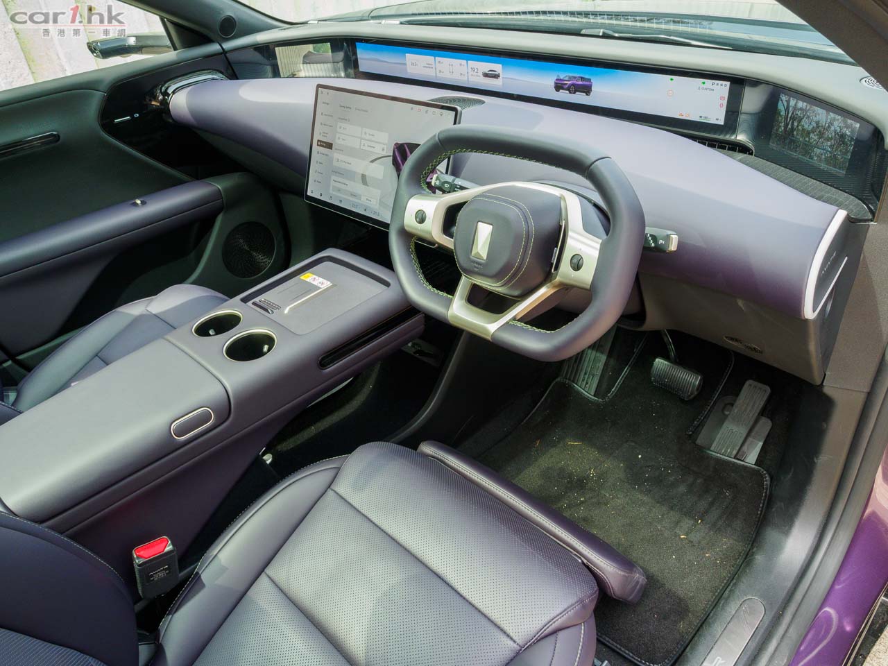 中文名「阿維塔」的 AVATR,普通話「安為德」代表長安、華為、寧德時代的組合,屬長安汽車旗下的高檔品牌,2018 年成立,總部位於重慶。07 同樣是由 AVATR 位於德國慕尼黑的設計中心設計,擁有所謂「New Emotive Luxury」主題。斜尾造型的 AVATR 11 在車尾有升降尾翼和一塊像本田 CRX del Sol 的垂直尾玻璃;稍短 (4,880 vs 4,825mm) 和稍高 (1,601 vs 1,620mm) 的 07 則是短斜尾模樣,車尾有正常玻璃一塊,有點類似保時捷 Panamera 和 Panamera Sport Turismo 的分別。與 11 一樣由「F」形燈條構成的「碟翼」車頭,是模仿 UFO 的科幻設計。據說「侵侵」打算在 7 月下令公開美國有關不明飛行物體的檔案,到時我們或可知道 AVATR 是否真的與實物相符。燈條由 280 顆 LED 組成,雙層厚壁光導技術使光帶沒有間斷,不是人家一格格的模樣。扁扁的尾燈沒有紅色燈條串連,沒有厚度的車尾 Logo 應該是貼紙一張。從前、後輪拱框走出來的「引力線」,在車側交匯成「梯」形摺線。廠方以一大堆數據如 0.61 軸長比、1.23 寬高比、0.48 輪高比來表示高大的 07 有合乎科學數據的美好身段。四種車身顏色有 Mineral Rock Black 黑、Cotton White 白、Andes Gray 灰和所見的 Damson Metallic 金屬紫,後者有金屬粒帶來閃粉效果。車系有後驅版和 Ultra 四驅,3 月 30 日前買現貨仍可享「一換一」價,前者早鳥 $299,800,後者 $369,800。