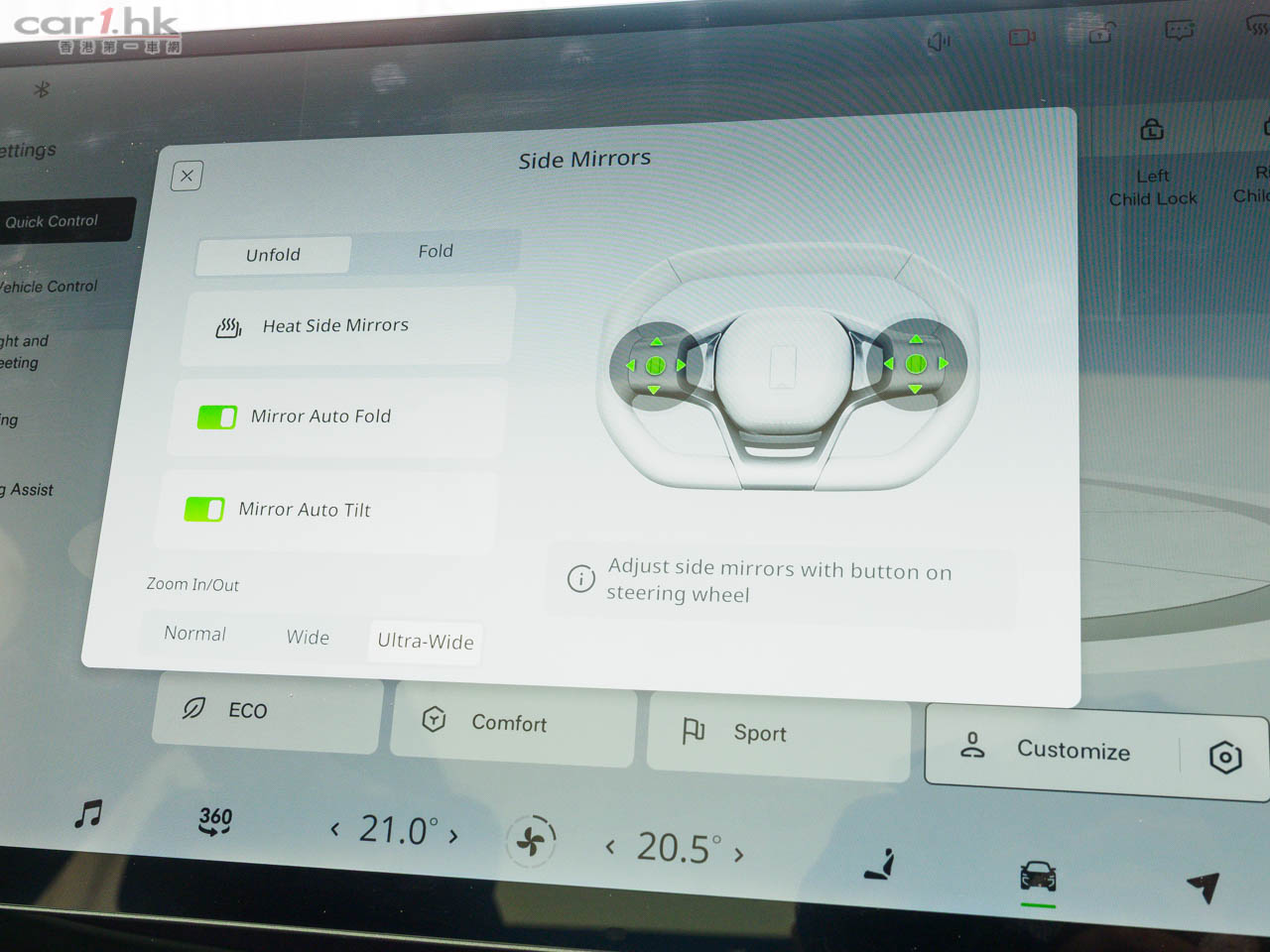 Drive Mode 有 Eco、Comfort、Sport 模式,另有更慳電的 Eco Plus。