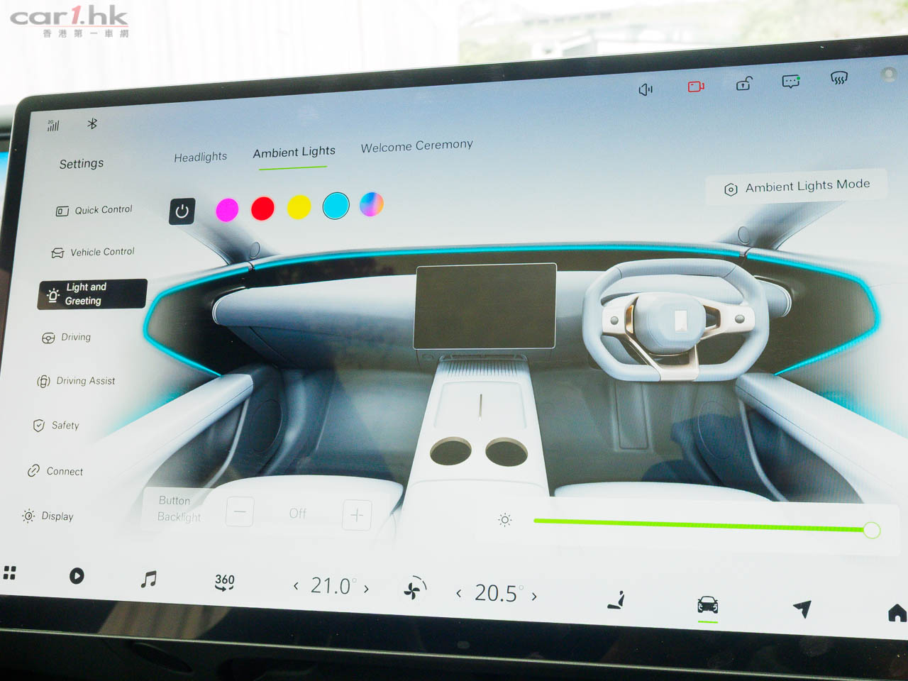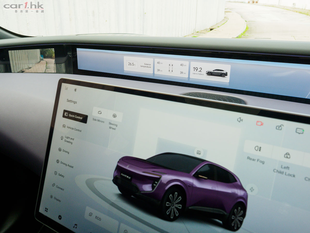 長長的顯示屏將胎壓、耗電量、室外溫度等好些應該出現在司機面前的訊息分撥到只顧玩手機的乘客面前,遠在左邊的其實從司機位看不清楚。