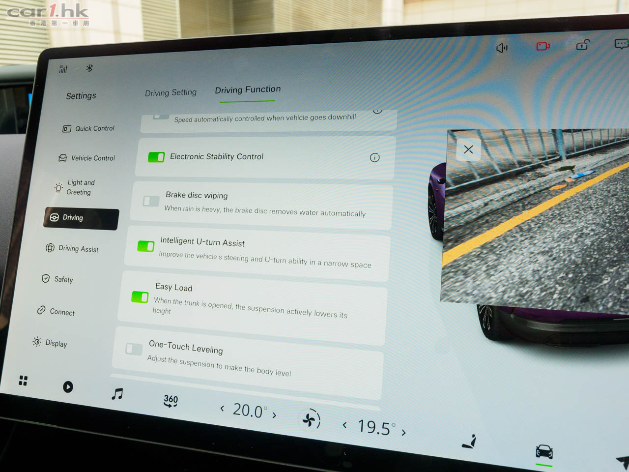 Easy Load 功能在開尾門時車尾會自動降低,Intelligent U-turn Assist 司機大角度轉向並踩電,系統會轉用頭驅加運用泊車感應系統自動掉頭。