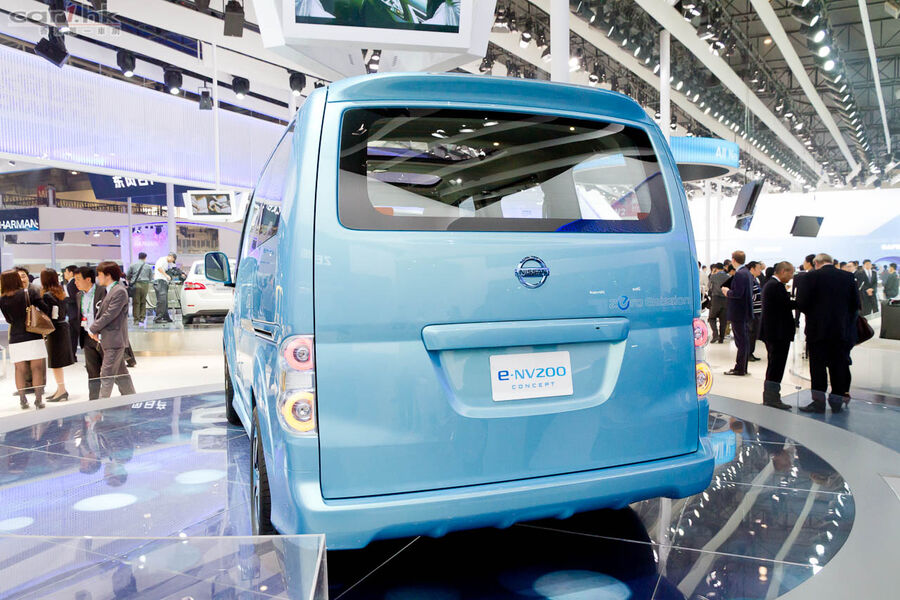 以在日本、歐洲和中國很受歡迎的 NV200 為基礎的概念多用途車 e-NV200 concept 車頭部分與 Leaf 設計非常相似,令人一望便知道其全電動車身份。Nissan 結合了與 Leaf 相近的行駛里程和 NV200 的載重和載貨能力,將以商業客戶為主,在某些地區也會以個人作使用對象。展出的 e-NV200 concept 一身代表對環境表達善意的湖水藍色,車頭正中的大型充電口蓋配上藍色為主的 Nissan 標誌,加上設計凌厲突出及揉合了 LED 技術的頭燈,令到整車都充滿未來感。