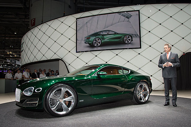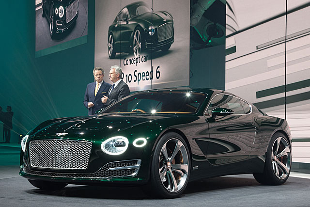 Bentley 在日內瓦車展除了推出 Continental GT 外,還帶來了全新的頂級 GT 跑車 EXP 10 Speed 6 概念車,車身造型有著 Continental GT 的身影,在市場定位上比 Continental GT 高,以 Aston Martin 及 Ferrari 等品牌為對手。EXP 10 Speed 6 概念車使用了家族式鬼面罩和標誌式的圓形頭燈,加上銳利的車身線條和雄厚的肌肉感,散發不一樣的 Bentley。另外,EXP 10 Speed 6 概念車還使用了現時十分流行的 3D 打印技術,例如網狀進氣孔、排氣管、車門把手和側面通風口,將製造零件的時間大幅減少。至於車廂方面,保持一貫豪華面貌,但就用上了更多的曲線設計,讓人置身其中時有著更強烈的跑車動感。動力系統雖然仍然未公佈,但估計使用 6.0 公升 W12 渦輪增壓引擎,此引擎有著 590 匹馬力,但為了配合 EXP 10 Speed 6 頂級 GT 跑車的身份,所以未來推出量產版時動力將會調校到更高的水平;另外,EXP 10 Speed 6 還會推出 Hybrid 車型。
