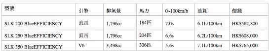 Mercedes-Benz 於 7 月 15 日假灣仔會議中心除了發布 C-Class Coupe 外,另一重頭戲便是第三代的 SLK-Class。 SLK 自 1996 年推出後直到現在,已經成為全球最具代表性的跑車之一。邁入第三代,SLK 將科技融入生活,首創的「MAGIC SKY CONTROL」可變光暗車頂玻璃,搭配嶄新的四汽缸及六汽缸引擎,比上一代降低 25% 油耗;跑車的設計與日常車的需要完美結合,正如 Mercedes-Benz 香港有限公司營運總裁魏德博士所說:「帶來多不勝數的駕駛樂趣。」