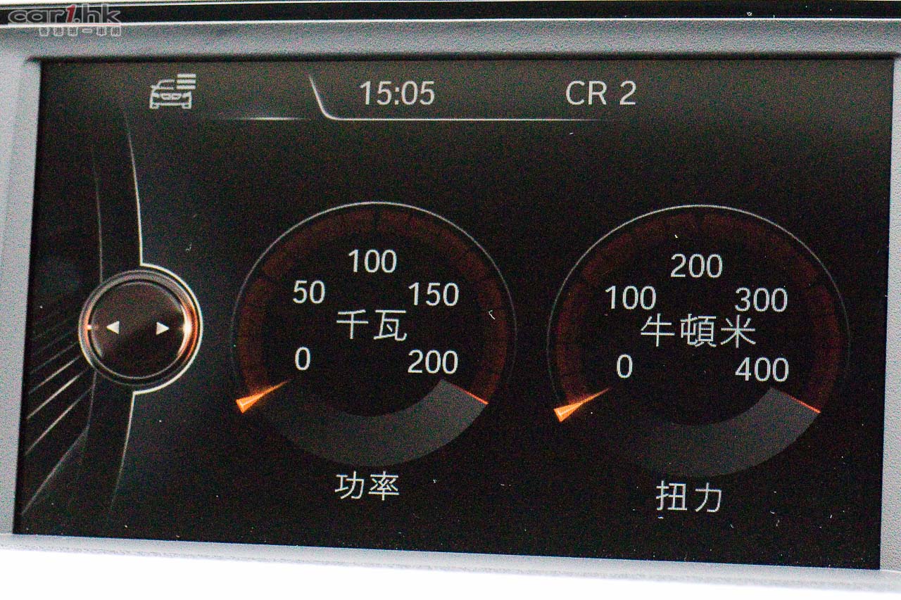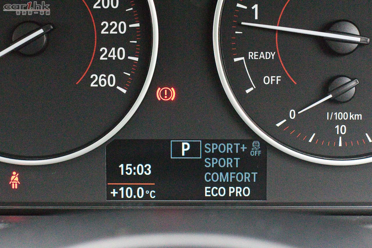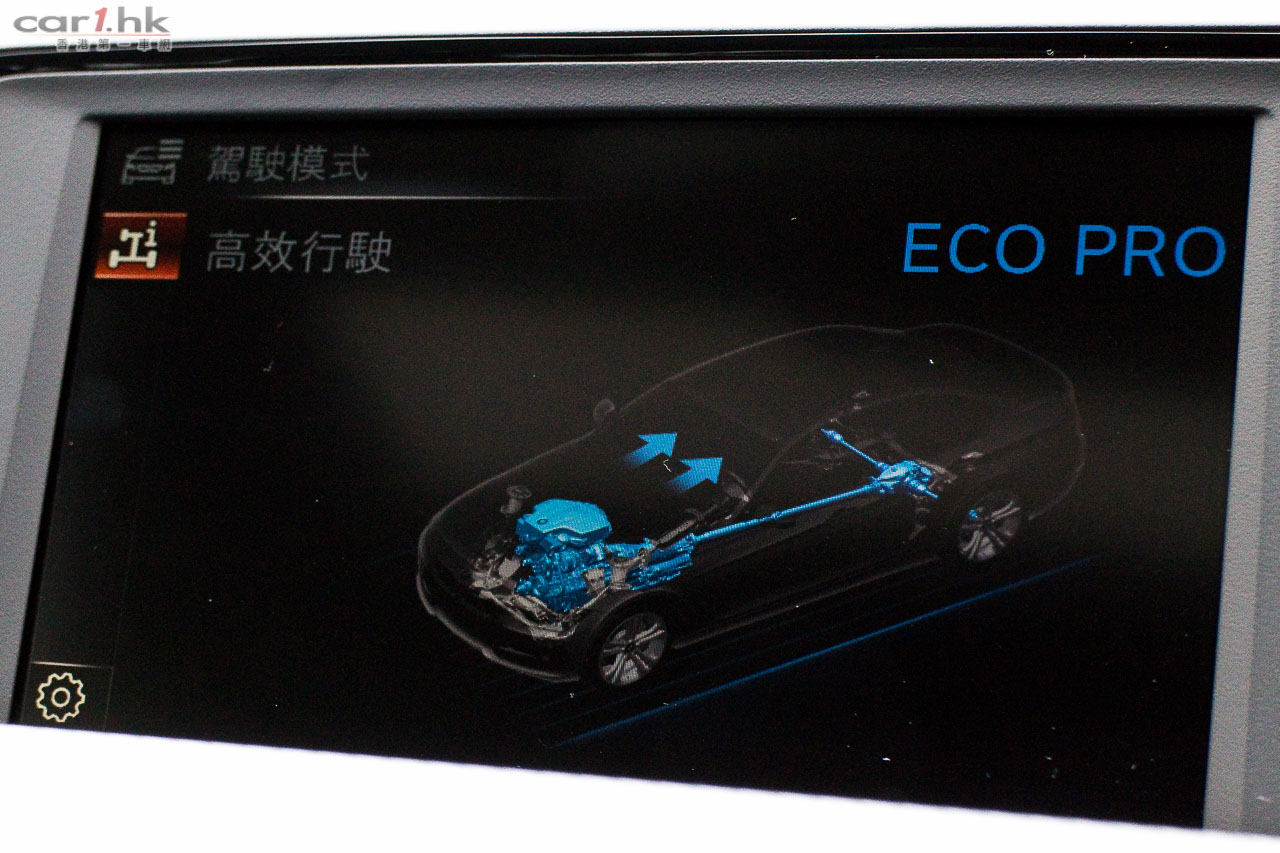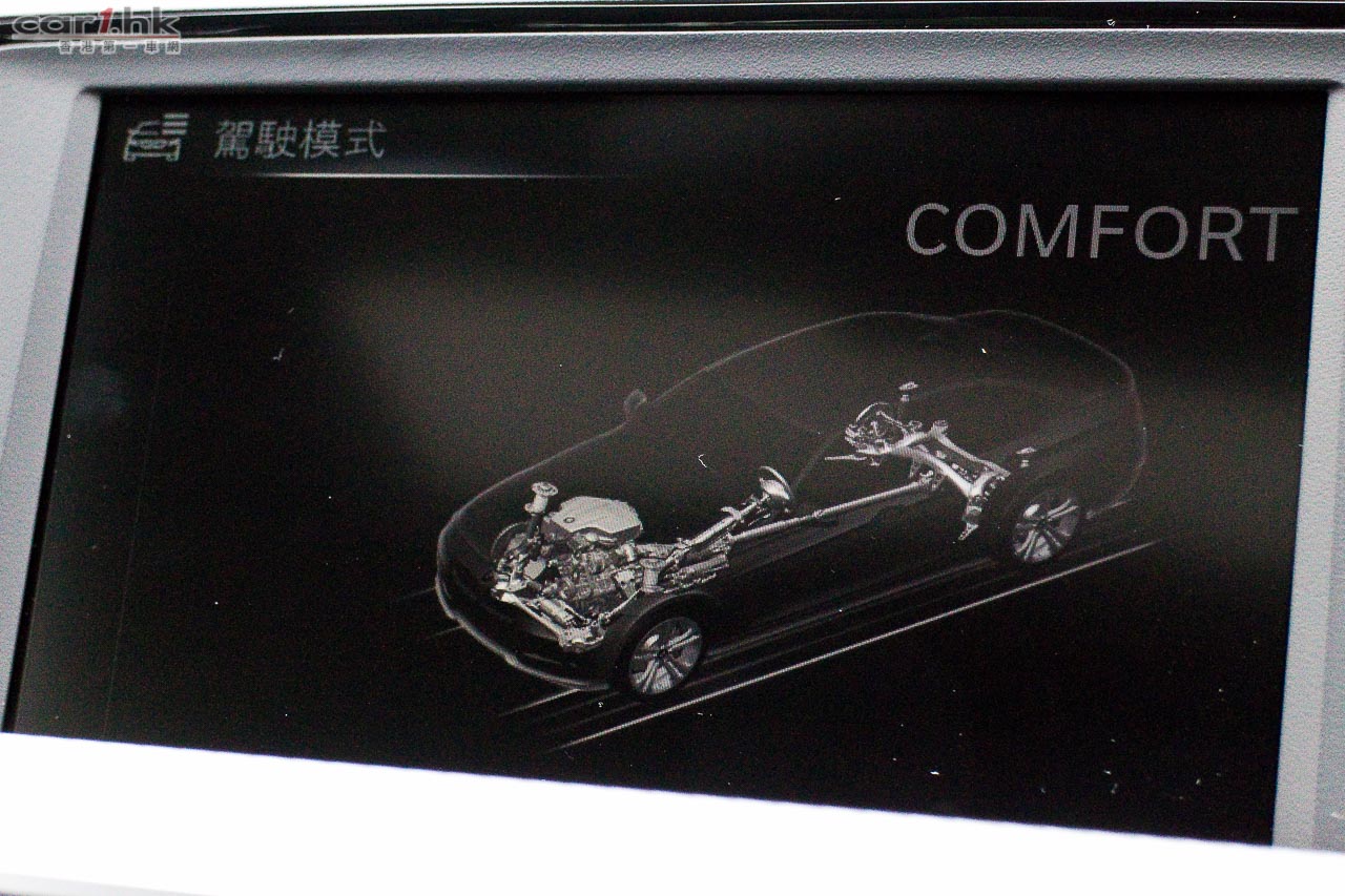 備有四種行車模式,ECO、COMFORT、SPORT、SPORT+,顯示屏亦可充當扭力計、功率計,可以得知汽車當時輸出狀態。