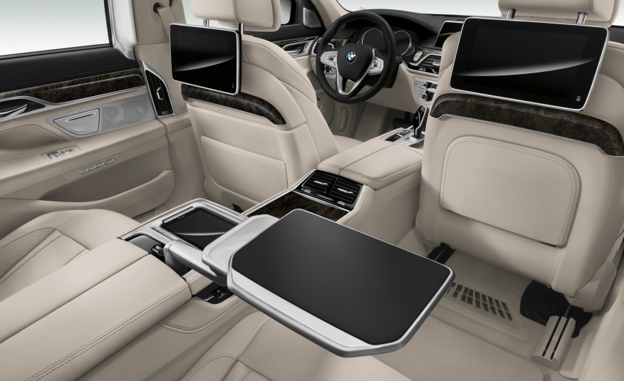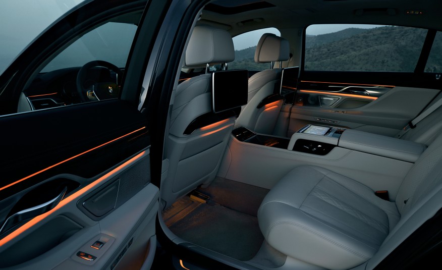 BMW 7-Series 迎來全新改款,外觀方面並沒有作太大改動,但就使用了 i8 的雷射頭燈,有效照明距離達到驚人的 600 米;而鬼面罩內則有可變式進氣開閉系統,可隨行車環境而調整進氣格柵,控制車輛行駕的風阻系數。另外,採用全新的「BMW Efficient Lightweight」技術,大幅採用鋁合金與碳纖維的複合高強度材質,提升車體剛性的同時更降低了 130 公升車重。至於車廂方面,除了常見的觸控螢幕外,還追加了 3D 探測器和手勢控制功能,可利用簡單的手勢操作車內,例如音量控制、接聽電話等各種功能。另外,還有平視顯示系統、主動側面碰撞保護裝置、3D 攝影機和遙控停車的新一代感應車匙,還有照明迎賓系統以白光雷射照亮地面,進出座駕時打造出高貴氣場。當然,一向極致奢華享受的 7 系不止如此,除了四區恆溫空調,電動調校座椅有按摩功能和主動式通風裝置,還有 Sky Lounge 全景電動玻璃天窗營造特別的車廂氣氛,最重要是第一輛配備智慧型手機無線充電功能的 BMW 車款。