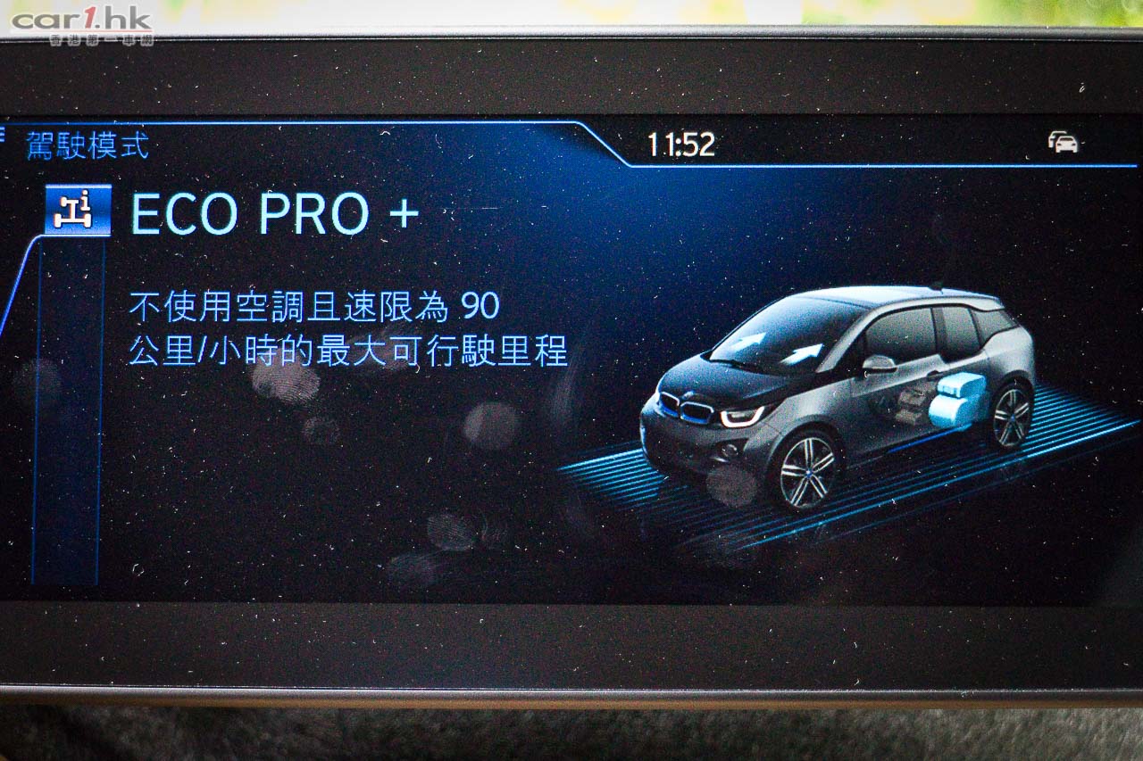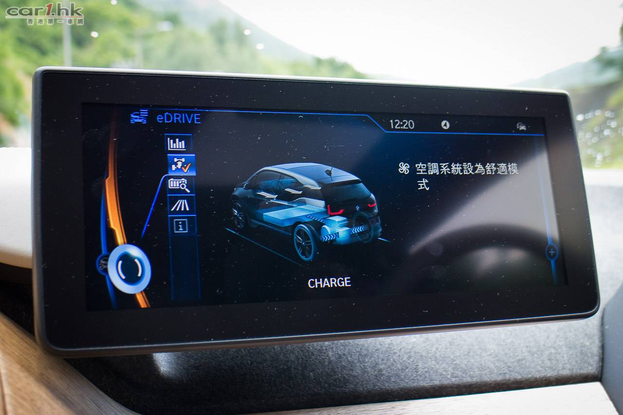 i3 有三種充電方式:AC/DC 快速充電可 30 分鐘充 80%,普通三腳插穌線充滿需 8 小時,如安裝需另購的掛窗 i Wallbox 充電機則只需 6 小時充滿。原廠提供 8 年/100,000km 保養的電池,容量有 18.8 kWh,續航距離在 Comfort mode 下可行約 130km,按下令反應變慢的 Eco Pro 或關冷氣的 Eco Pro+ 則可行約 130 至2 00 km。如用家還是擔心的話,可另購配「range extender」發電機,是一個輔設在摩打旁的 650cc 兩汽缸引擎,可將續航距離延長至 300km。