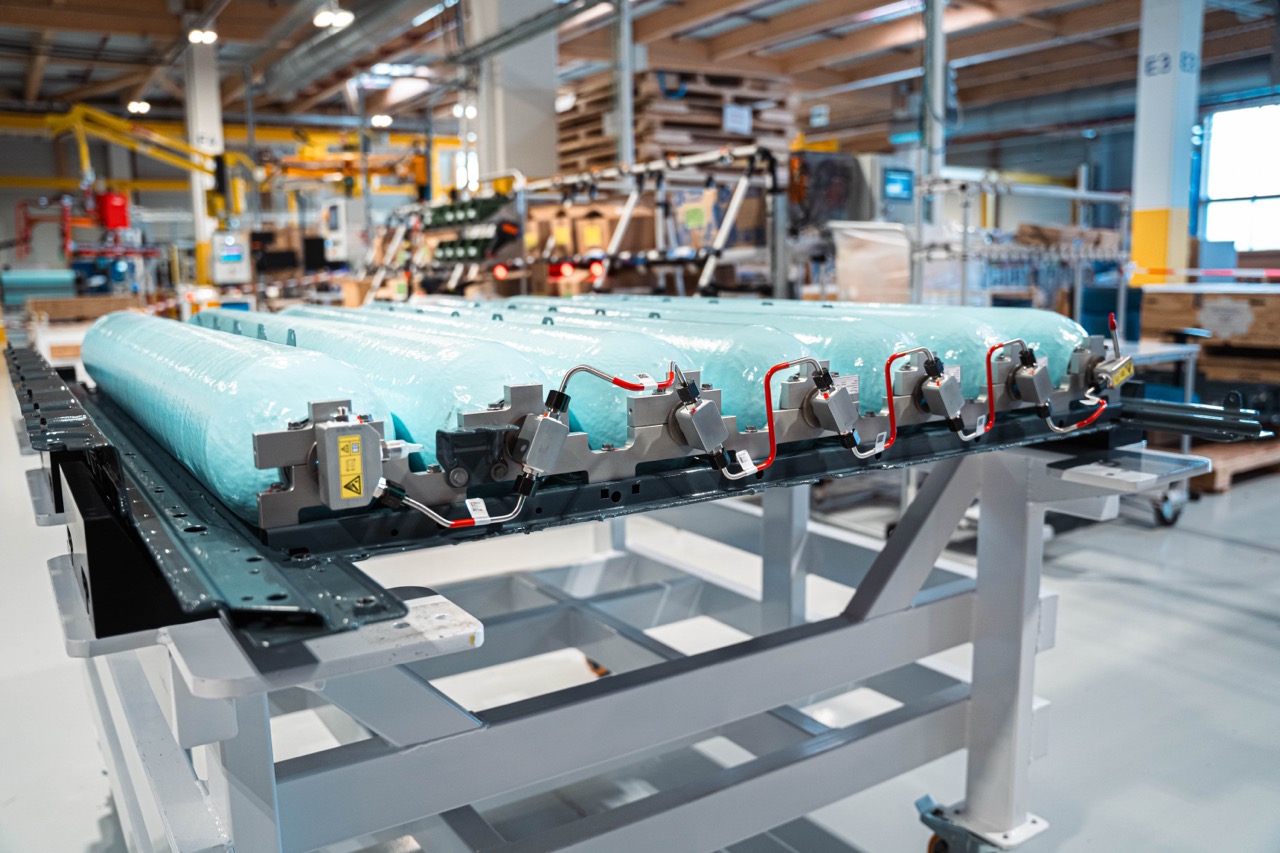 從技術層面分析,這套系統由七個碳纖維增強複合材料(CFRP)製成的高壓儲氣罐組成。不同於傳統的單一大型壓力容器,這七個氣罐以並行方式連接,並整合在一個堅固的金屬框架內,形成一個由中央主閥控制的封閉單元。這種創新的「多腔體」設計已讓 BMW 集團申請了多項專利。系統總計可儲存至少 7 公斤的氫氣,而從空槽加滿至 700 bar 的高壓狀態僅需不到 5 分鐘。這種安全、乾淨且迅速的能源補充方式,完美彌補了純電動車(BEV)在充電時間上的短板。