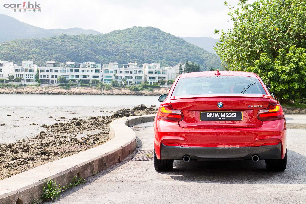 這副直六引擎跟 M135i 其實一樣,2,979cc 直六 TwinScroll Turbo 引擎,不過馬力比師弟馬力多 6 匹,總共 326 匹和 450 牛頓扭力。即使這部 M235i 更大更重,但起步 0-100km/h 只需 4.8 秒,可見性能已經比舊有設定提升不少。其起步比 Audi S3 快 0.1 秒,慢 CLA 45 AMG 0.2 秒。試駕前已早已預期它的起步很夠爆炸力,一踩油已經黎料,去到 3,000 多轉左右「湧力」很猛,波箱轉檔明快,尤其在 Sport 模式時,燈位起步踩盡油門,加速度刺激感很強,去到中段仍然感到依然有貨,Turbo Lag 近乎完美難以察覺,而攻彎時波箱反應準確,要二波就二波,三波就三波,很少跳波情況,令人信心大增,亦提升快走時的準確性,是人玩車,不會給你車玩人的感覺。車架比 220i 硬得多,路感反應更為明顯,加上 BMW 自豪的 50:50 前後重量分佈,令到這架 M235i 快走時非常聽話,而且令人覺得很安心快走。如果你真想要一架運動感很強的小炮,M235i 不論在整體爆發力、駕駛感方面都拿捏得平衡,其定位是模糊?已經不重要,只要知道它是一架好玩的車便可。