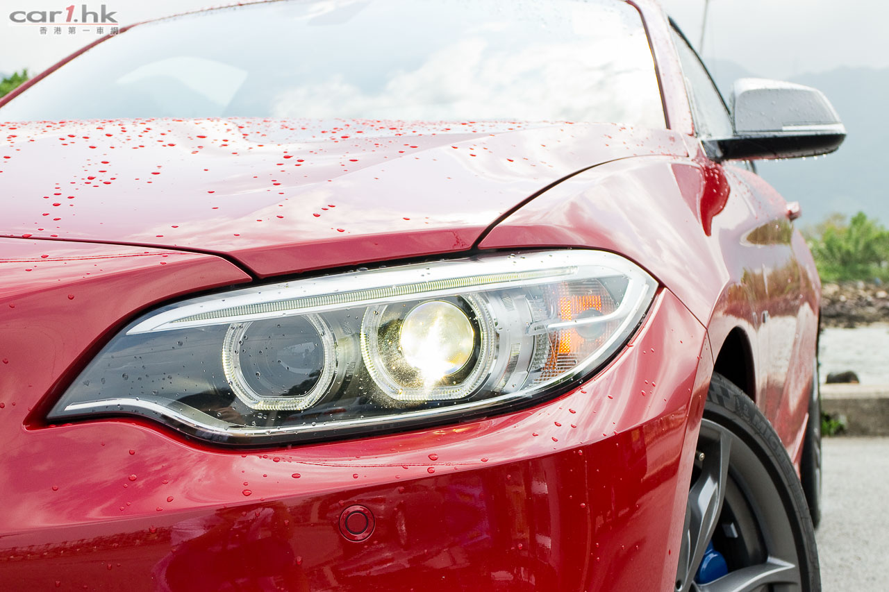 當年 BMW 推出 1M Coupe 賣得還不算太好,很快就被市場上其他車蓋過,話題性未算獲得大迴響。不過有爆炸力的車仔其實有一定車主喜歡,不過實用性方面當然人人想同時俱全,BMW 2 系其實有這個傾向。儘管很多人說 BMW 2 系令人覺得整體車系很眼花撩亂,但是要滿足到更多人,要讓你有得揀的話,相信只有一線車廠才願意這樣投資。全新 2 系比 1 系 Coupe 長 94mm、闊 26mm,軸距也提升了 30mm,但後座的感覺已經比師弟好。加上 M 字後,這部車的外觀也惡起來,鬼面罩、車燈的「鷹」味很濃,泵把加入大量擾流設計,入風口夠大再有立體層次修飾,完全唔會令人覺得失禮。銀色倒後鏡、M 系 17 吋富立體感五幅輪圈,還可透視出藍色煞車鉗,再加上超短尾 Coupe 設計,跑感比 220i 更具挑釁性。