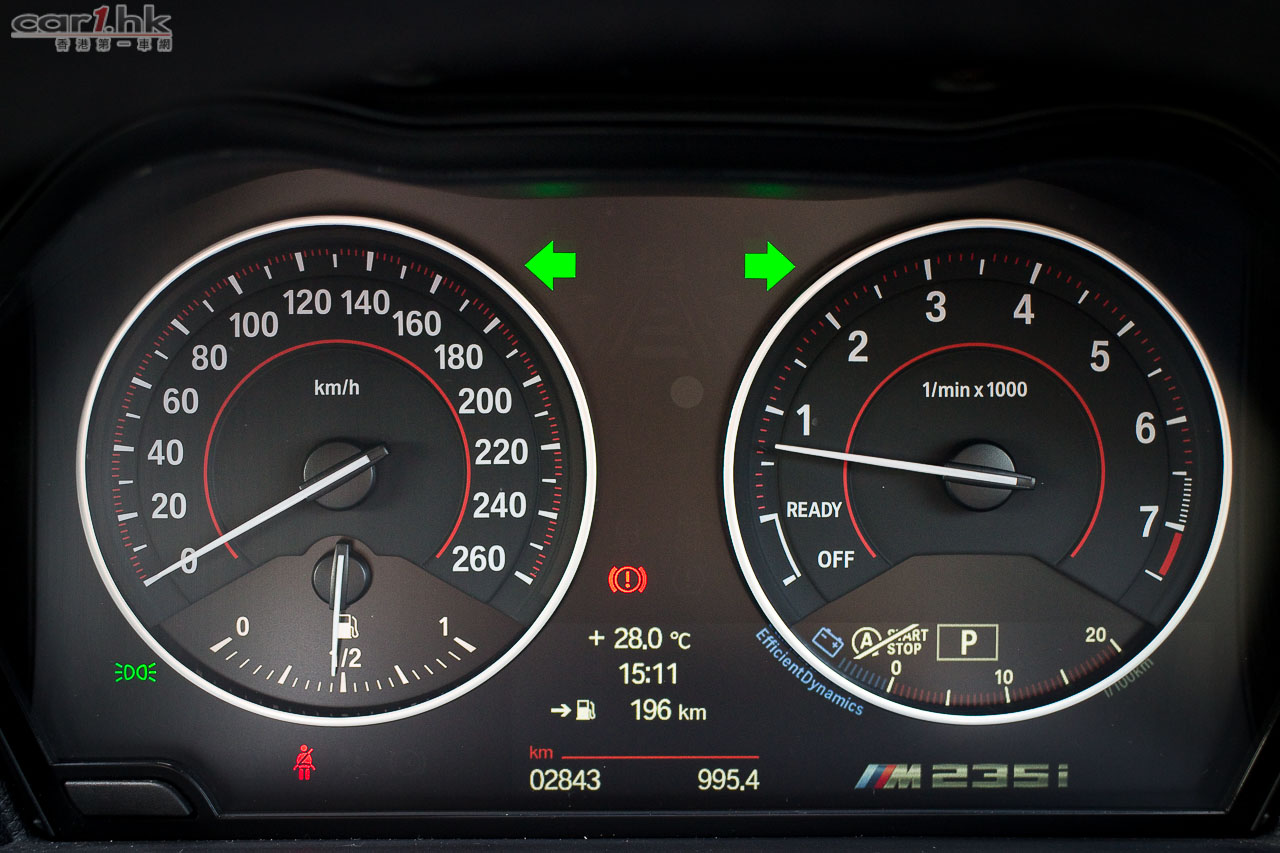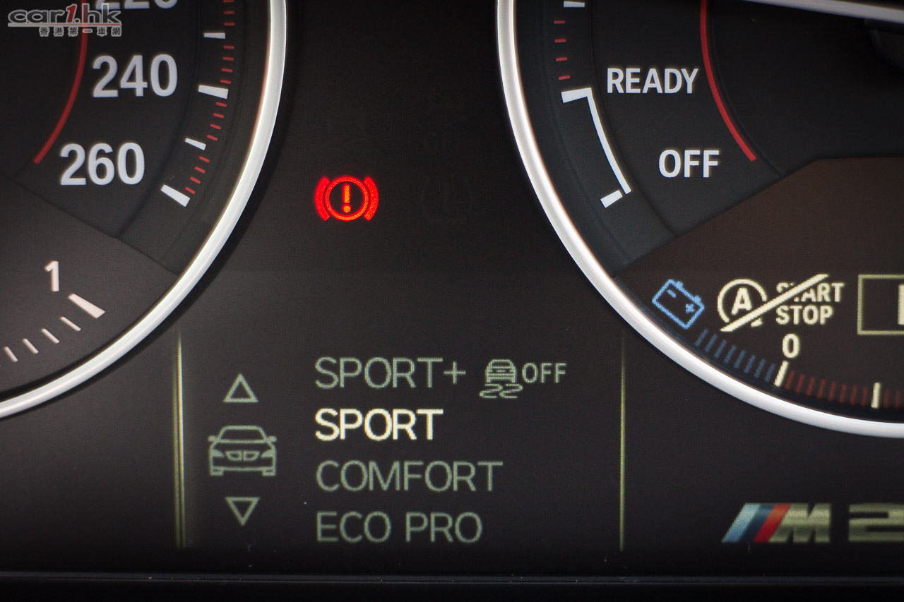 四個駕駛模式在近年 BMW 的車很常見。錶板左下邊的顯示屏會展示出 M235i 字樣。