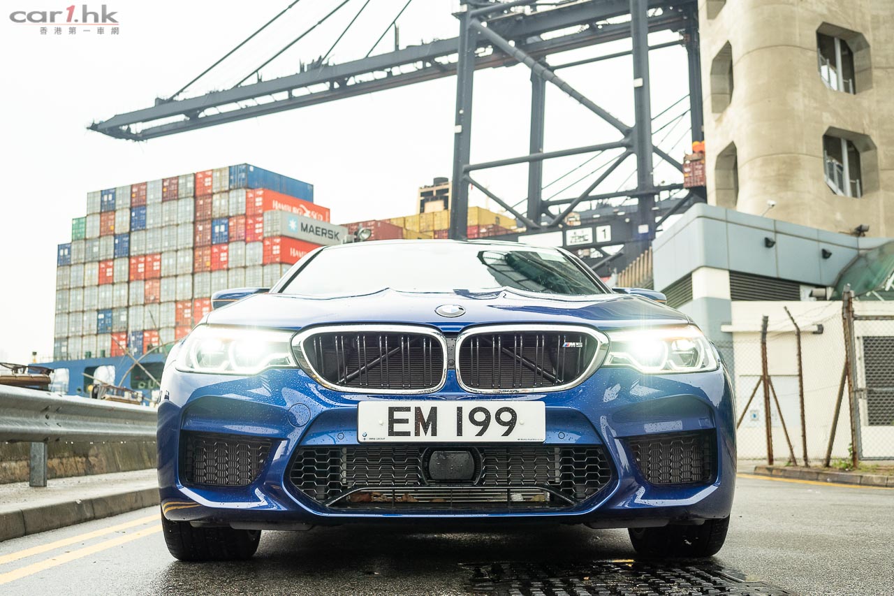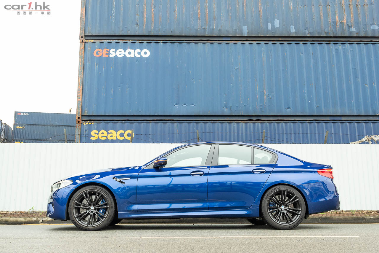 相比 0-100km/h 需 3.4 秒的 612 匹 AMG E 63 S 4MATIC+ 和 3.7 秒的 605 匹Audi RS 6 Avant,M5 同樣有一踩即去,段段有力的狂大加速力,車子 0-100km/h 與 E 63 S 一樣需 3.4 秒,就是你想怎樣它便怎樣那樣。車子的玩法與其他 M 車無異,引擎反應、懸掛軟硬、軚盤輕重可從波棍右旁的按鈕獨立控制,另有排氣喉兩段活瓣變聲,轉波快慢轉了在波棍上進行;各個反應一如以往,軚盤在 Comfort、Sport 和 Sport + 下分別有太輕、好些和剛好的重量分別,同是一條直路試勻後永遠留在 Sport + 好了,軚盤本身有不錯的直接手感。波箱在 Comfort 時就如一般自動波的柔順,Sport + 當然快捷得多,盡油時有「chok」頸反應,但稍稍沒有DCT波箱的爽勁。引擎 Sport + 配波箱 Sport + 時「chok」上加「chok」。排氣喉在正常狀態下有 V8 引擎式的低沈聲調,按制改變活瓣後明顯變得響亮和更加「咕嘮…咕嘮…」和特別在拖波時「啪啪…」聲。懸掛同是 Comfort 時比普通 5 系的 Comfort 稍硬,Sport + 時在爛路上會有較多彈跳,貼路性能很大,感覺上比舊款輕巧和咬地;制動力實淨。在濕路上行「4WD Sport」,車子被踩甩尾時自動將扭力傳至前輪,無需 DSC 穩定系統怎樣著燈,改用「2WD」尾驅則是另一回事。