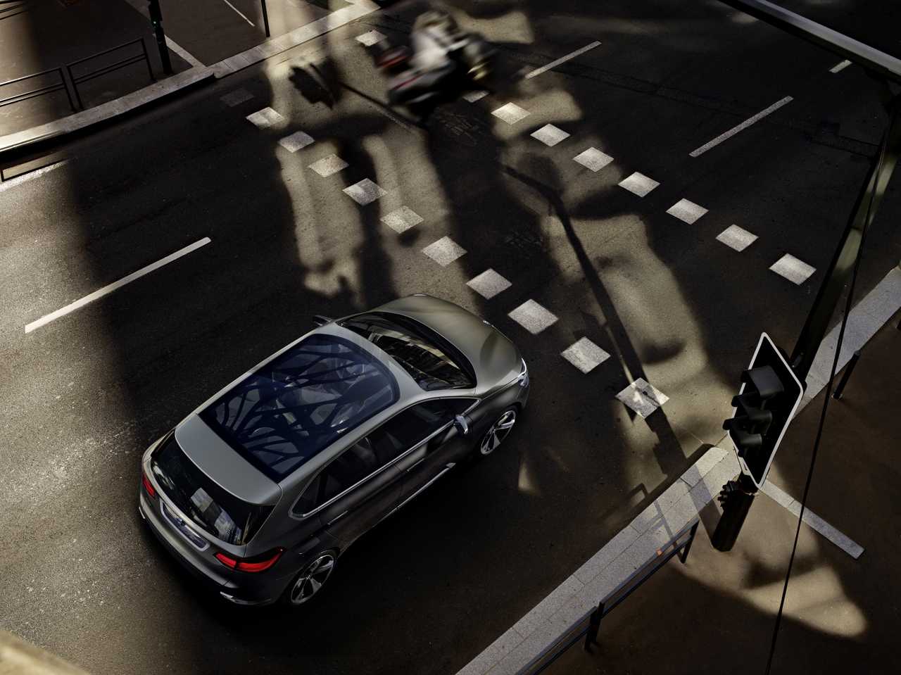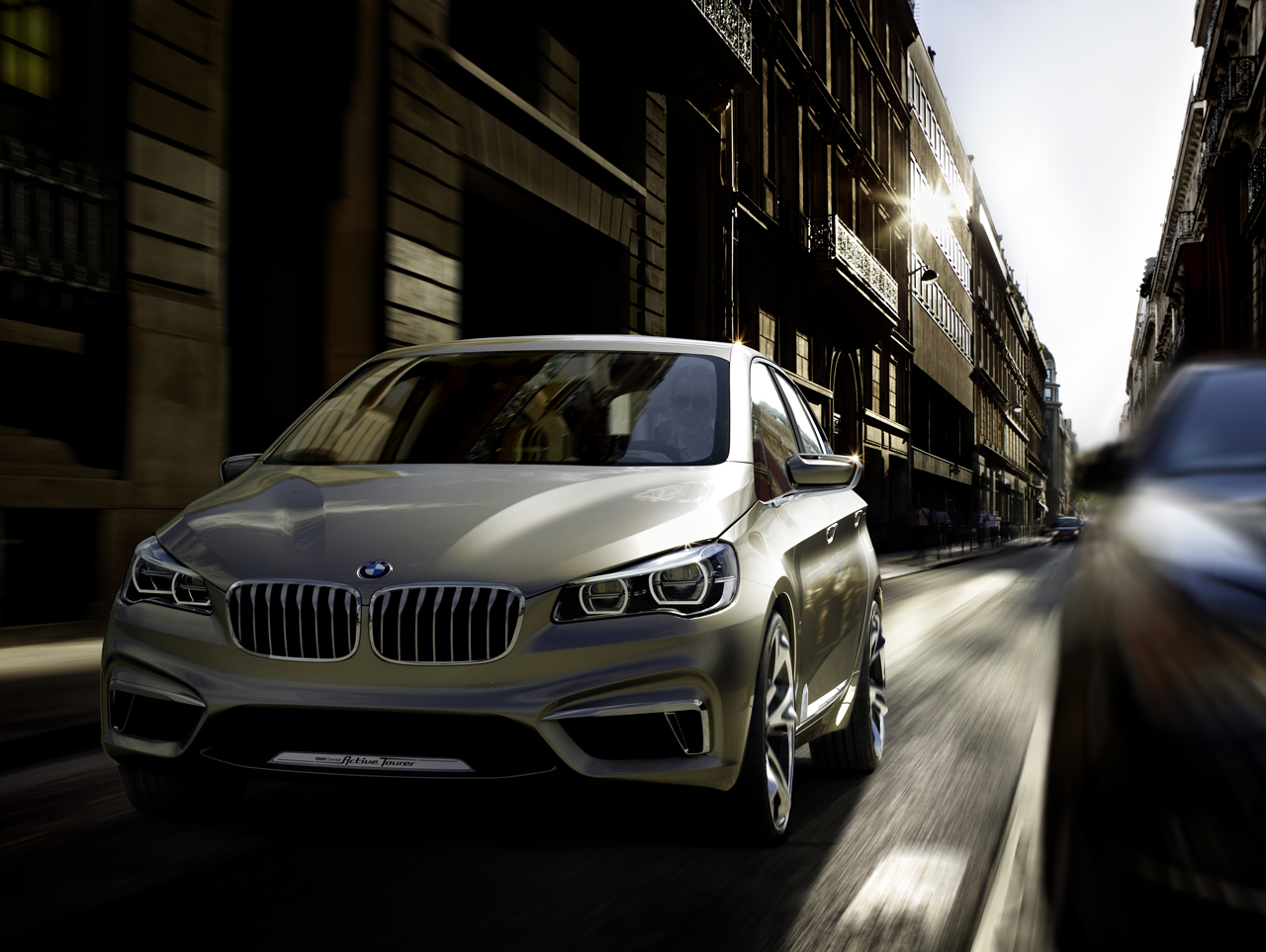 首先為大家介紹「BMW Concept Active Tourer」,這部採用 Plug-in 混能動力系統的概念車,同時創新了車廂內部環境及駕駛的思維。車身全長 4.35m,採用四門房車設計,但因為前後車軸距離達 2.67m,加上車身闊 1.834m,所以車廂空間已脫離了一般跑車的常規,駕駛者與乘客同樣有更寬敞的車廂空間。另外它的後排座椅能夠自由地平放,騰出更多空間以裝載大件物品,兼顧了實際應用層面。