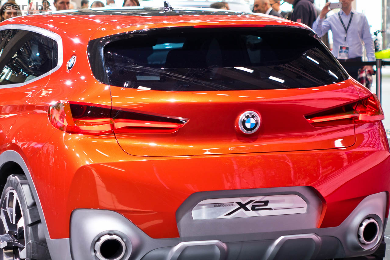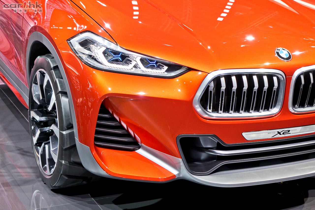 123456 小朋友也識數,不過 BMW X SAV 旅行車家族中,一直缺少了 2 這個型號,等了那麼多年,BMW 終於要它們一家團圓。巴黎車展中神祕嘉賓就是 BMW X2 概念車,儘管只是概念車,但已經令 X 粉絲歡天喜地。X2 擁有家族式鬼面罩,車燈尖長銳利,泵把入風口十分大,跟現有 BMW 車系有點分別。車上用上黑玻璃就可以知道它的完全度仍然不高,不太想大家看到入面是什麼情況。X2 將應用 UKL1 底盤,亦是會提供前輪和四驅兩個版本,車身設計有 Coupe 架子,運動感很強,車尾的排氣喉還用上戰鬥機引擎排氣設計,絕對型爆。車尾 C 柱貼上 BMW 車章,前後左右車身也能得知它是一部 BMW。如果量產時是這樣的話,未必每個車主都喜歡。X2 的主要對手將迎戰近年大熱的 Mercedes-Benz GLA 和 Audi Q3。今次 X2 概念車要量產基本上是志在必行,今次如此型爆的概念車殺出來,原本打算買其他小型旅行車車主,可能會因此停一停等一等。
