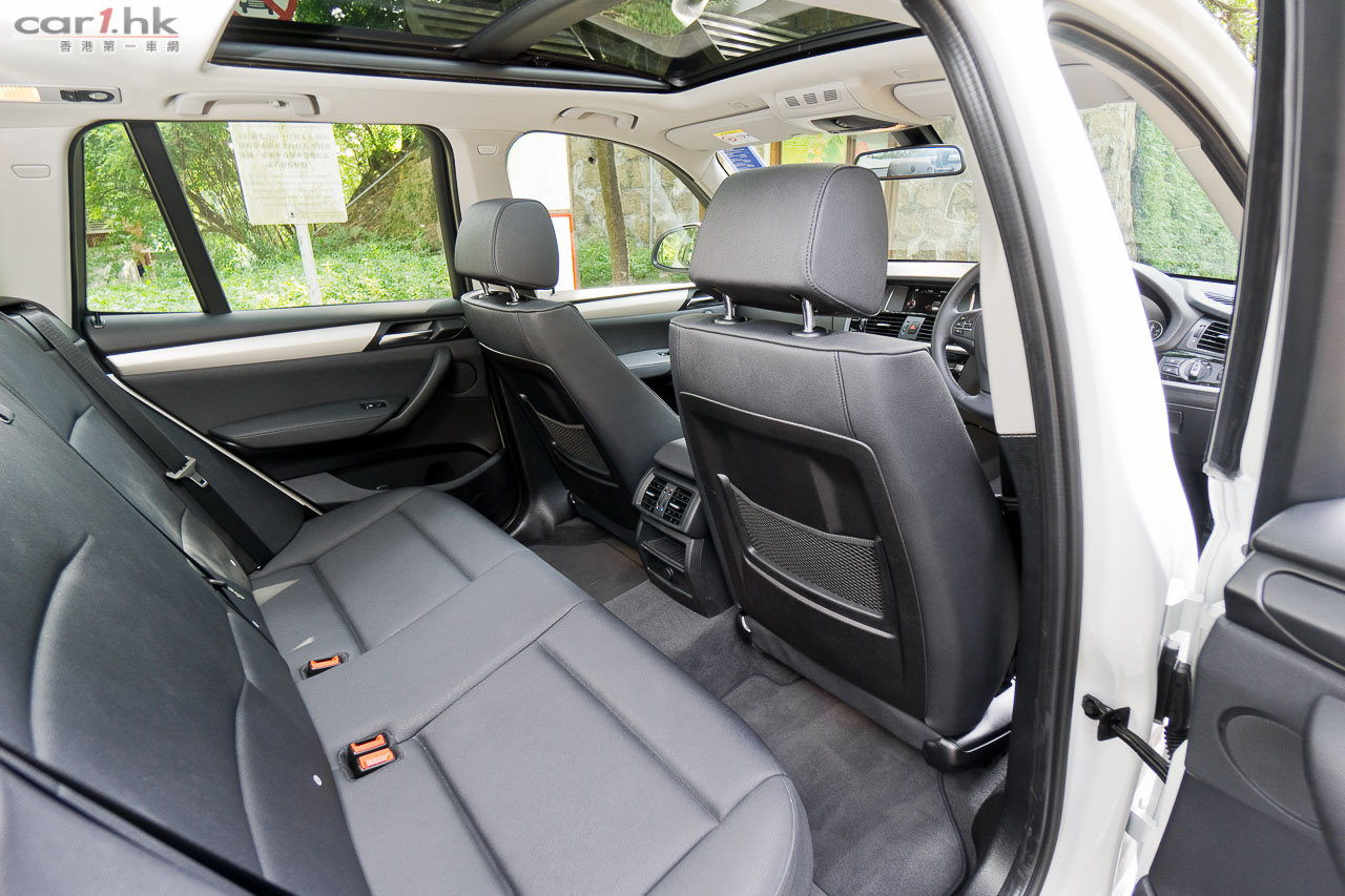 雖然,X3 的車廂用料略嫌膠感,但整體佈局仍然很寶馬,Joystick 波棍、三幅式軚環(可惜不設轉波撥片)、超大玻璃天幕頂等,設備是很充足。而且,車廂空間也十分足夠,尤其後座腳位可媲美 X5 一類大型 SAV,當然亦較 X1 寬裕,這便是 X3 的最大賣點。另外,尾箱亦夠巨型,放下三個超大型 XL 級 Rimowa 行李篋也綽綽有餘,用來收藏阿囝的單車和阿囡的 Elsa 城堡也沒問題!
