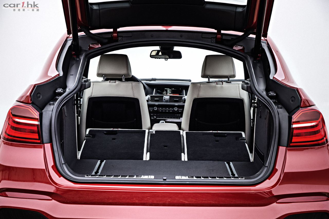 前排座椅的高度與BMW X3 相比降低了20 毫米,再加上可選裝雙座式後排座椅,在豪華高雅的車內空間突出了新款BMW X4 的轎跑車特質。同時,X4 最大載員為五人,為乘客提供了寬敞的乘坐空間,並且標配的後排座椅靠背可以按照40:20:40 的比例折疊,使載物空間非常靈活。