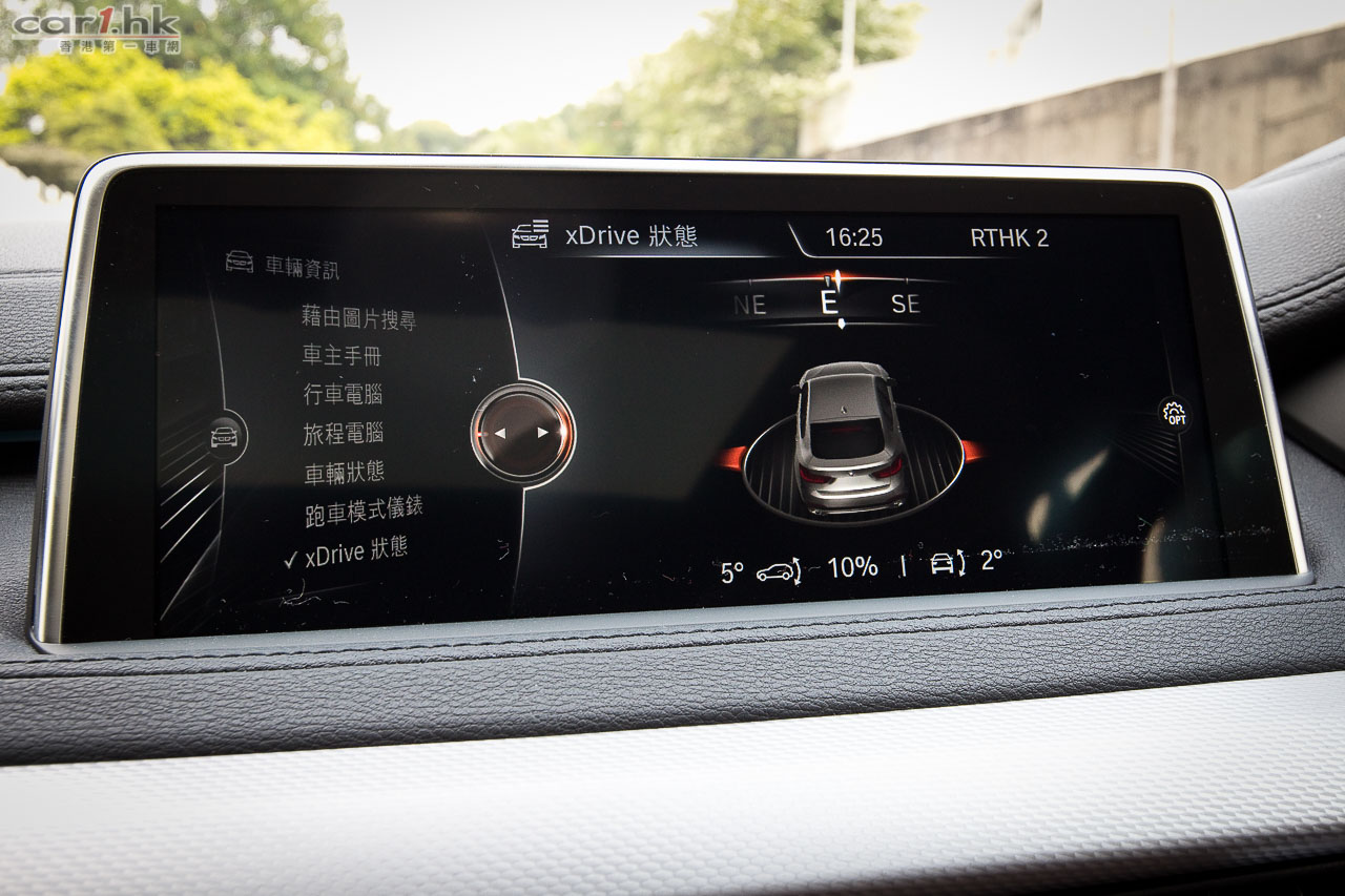 選擇 X6 xDrive 30d 的車主最關心的必然是動力方面,它使用 2,993cc 直六柴油 Turbo 引擎,最大馬力達到 258 匹和 560 牛頓米扭力,扭力輸出在 1,500-3,000 轉時就可以完全發揮出來,對於無需高馬力極速行駛的香港用家來說,反而更適合我們在香港行走。其起步感很有爆炸力,就算這部車重 2,000kg 多,其起步反應都是很爽快,尤其在 Sport 模式時,加速感沒有令筆者失望。雖然馬力不算多,只有 258 匹,帶著它在郊區飛馳或者公路快速行駛,即使走到多於 80km/h-100km/h 仍然覺得有心有力。這部車的 0-100km/h 只需 6.7 秒,極速達 230km/h。隔音方面,跟汽油版本分別不太,在車外是聽到「噠噠噠…」的柴油引擎聲的,如果我說沒有大家也不會信吧,不過在車廂內是 OK 的,隔音做得不錯。BMW 這個系列的旅行車底盤一向以扎實見稱,所以劈彎時車身的傾側不多。xDrive 四驅系統方便一些會走爛地泥路的車主,尤其是那些會出入中港兩地的車主。油耗方面,可說是 X6 xDrive 30d 賣點之一,官方數字為 6L/100km 超低油耗,加上柴油價格平一點,令到經常開旅行車的用家難以抗拒如此慳油的誘惑。