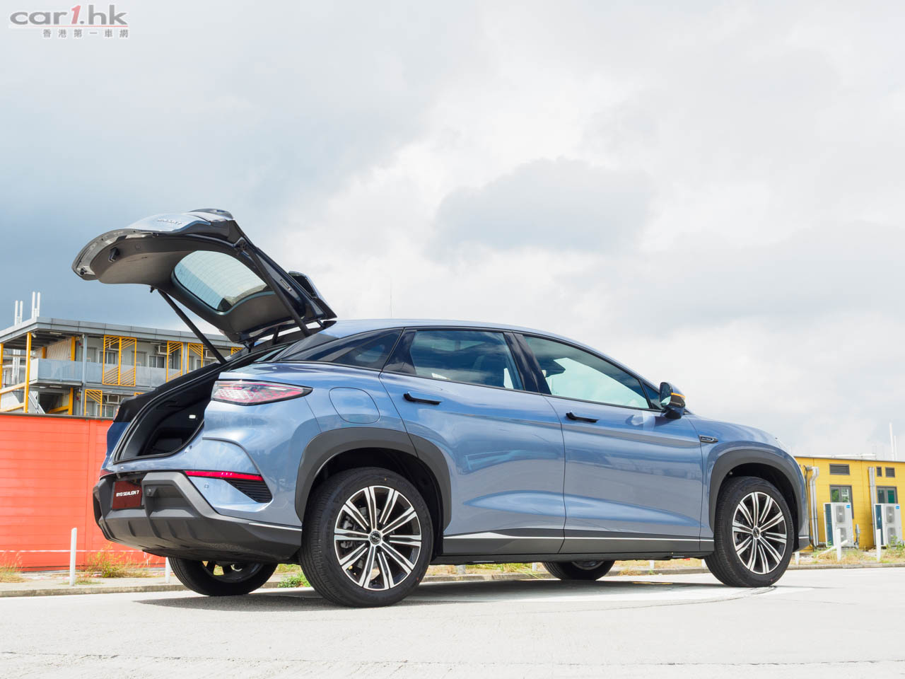 就像將 Seal 房車升高作 SUV 的 Sealion,同有頭泵把翼片呈「X」型的所謂「Ocean X Face」(海洋 X 臉)車頭設計,「蟹鉗」形的頭燈同有兩顆扁扁的 LED 大燈在內,擴散形的「動勢水滴」尾燈有紅色燈條串聯,沙板飾片有「BYD DESIGN」字,彈出的門手柄有「BYD」Logo,車頂有「貓耳」形風翼;輪胎與 Premium 一樣是前 235/50 R19、後 255/45 R19,Performance 版才用 20 吋輪圈。