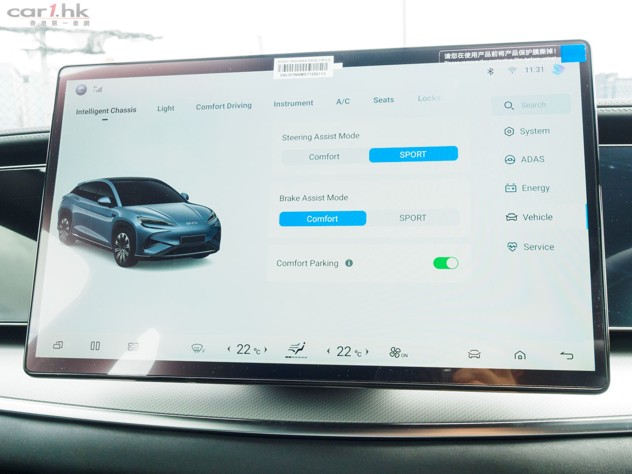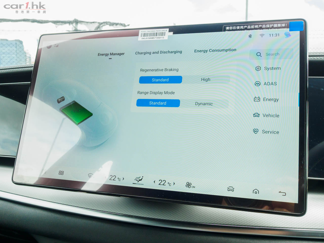 駕駛反應選擇有兩種回充拖慢度、兩種軚盤重量、兩種 Brake 踏重量,另有 Comfort Braking 停車減「chok」、HDC 落坡慢爬。
