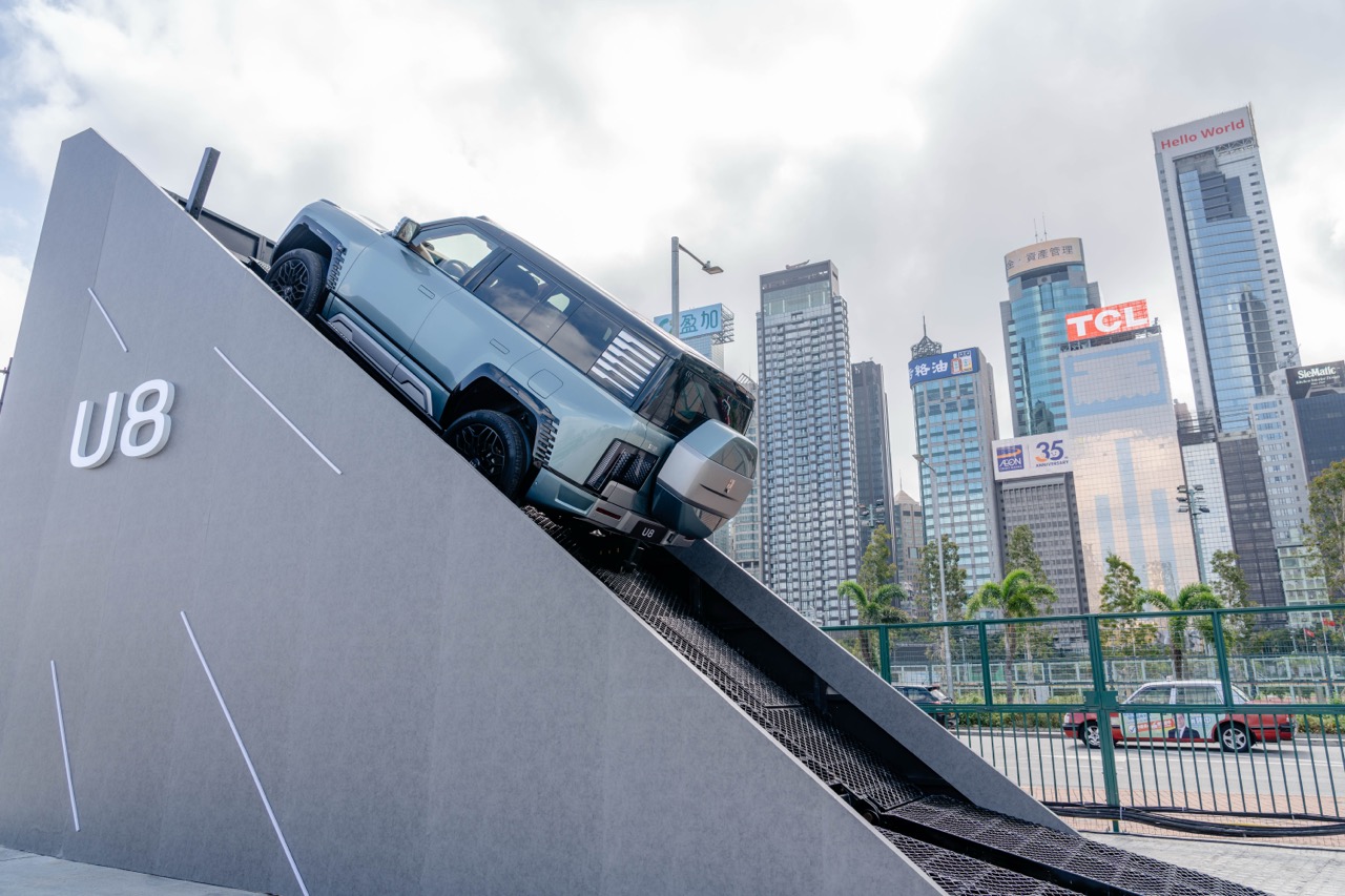 DENZA B5 更於現場開放越野試駕,挑戰「交叉軸」與「側斜坡」等障礙,充分展示其智慧懸掛的穩定性與靈活性;而價值逾百萬的仰望U8則以38度斜坡姿態展示於維港背景之下,成為全場最強「打卡位」。