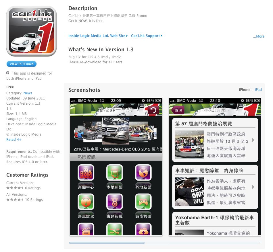 Apple iOS 版本:http://itunes.apple.com/hk/app/car1.hk/id387363423?mt=8