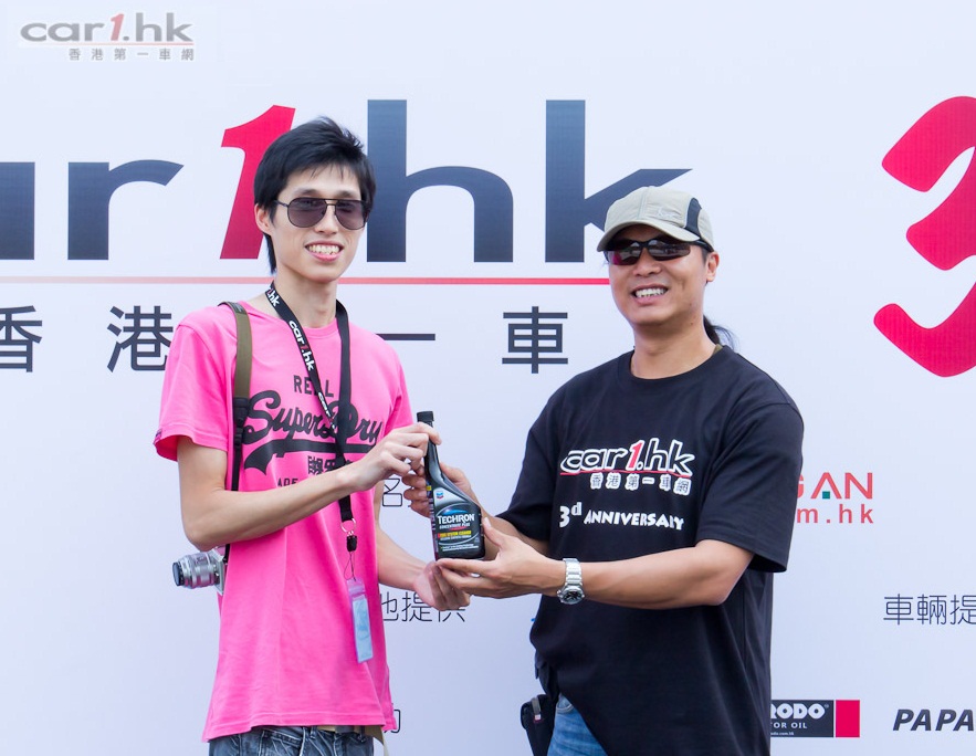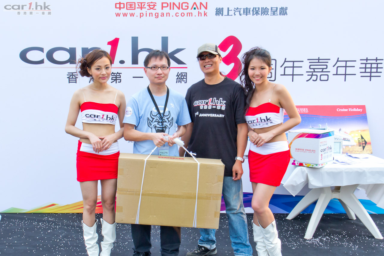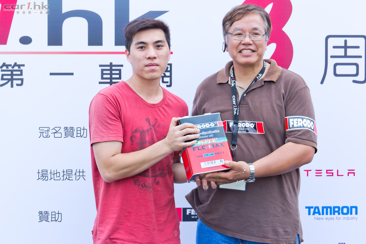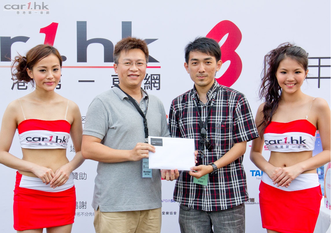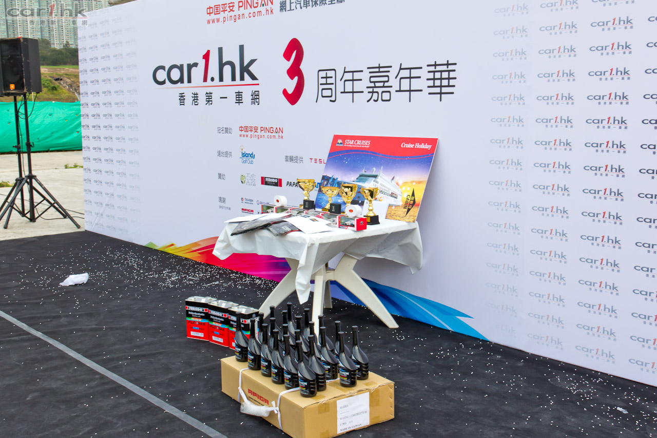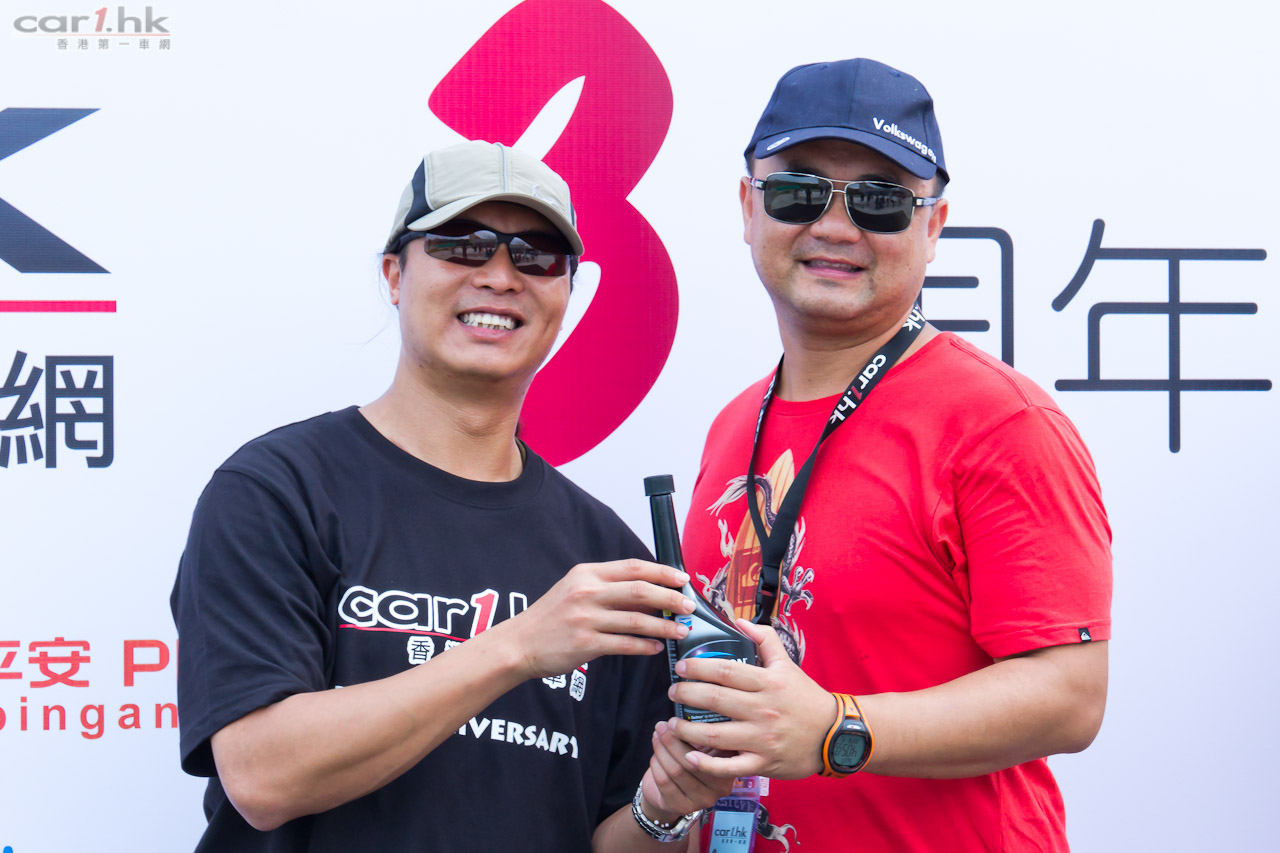 嘉年華當然少不了抽獎吧!除了豐富紀念品外,我們全日總共送出過百份禮物。包括加德士雪佛龍送出的 Techron 引擎清潔效能添加劑、CarPlan Screen Wipes、鈴師傅維修現金劵、Capdase 雙 USB 車用充電器及 Ferodo 全合成機油等等,獎品太多,不能盡錄。當然,少不了終極大抽獎,由 APIGA 送出的摺疊式賽車架、COATER 送出價值 $3,280 和 $5,280 的汽車鍍膜護理服務,以及麗星郵輪送出 2 份總值 HK$8,596 的雙人海上郵輪假期船票。